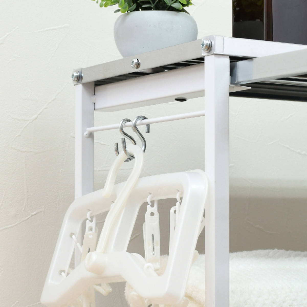 付属品としてS字フックがついています。洗濯ネットやハンガーなどを引っ掛けることもできます。