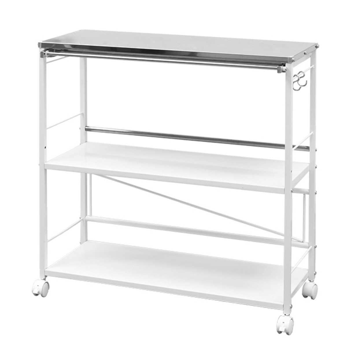 キャスターは4個中2個がストッパー付きです。作業台として使用する際にワゴンが勝手に動いてしまう心配を減らしてくれます。
