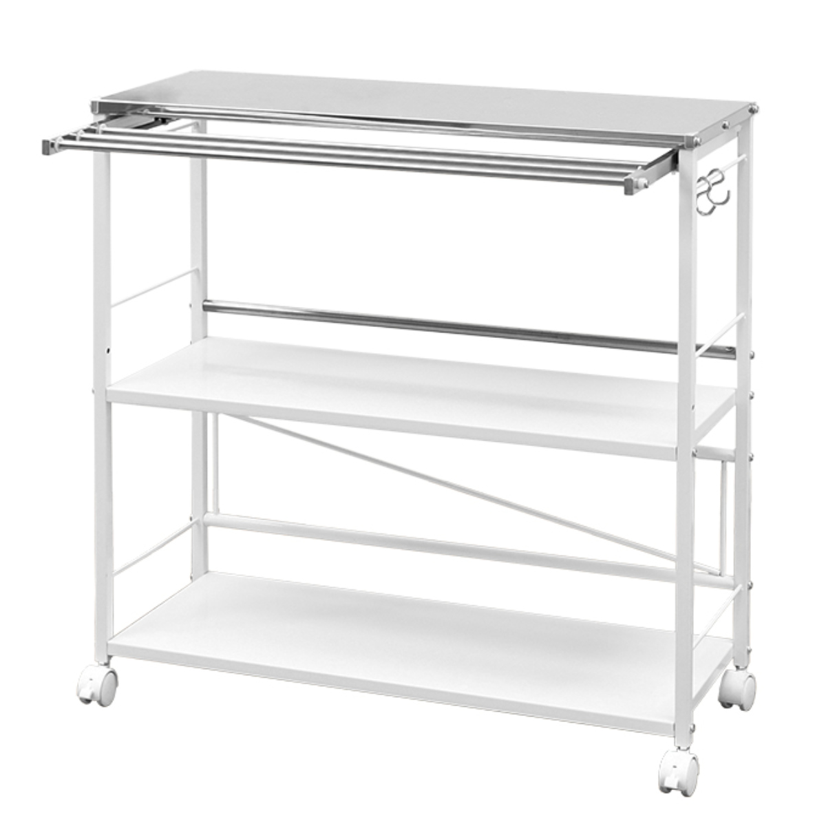引き出して使える3連タオル掛け付きランドリーワゴン