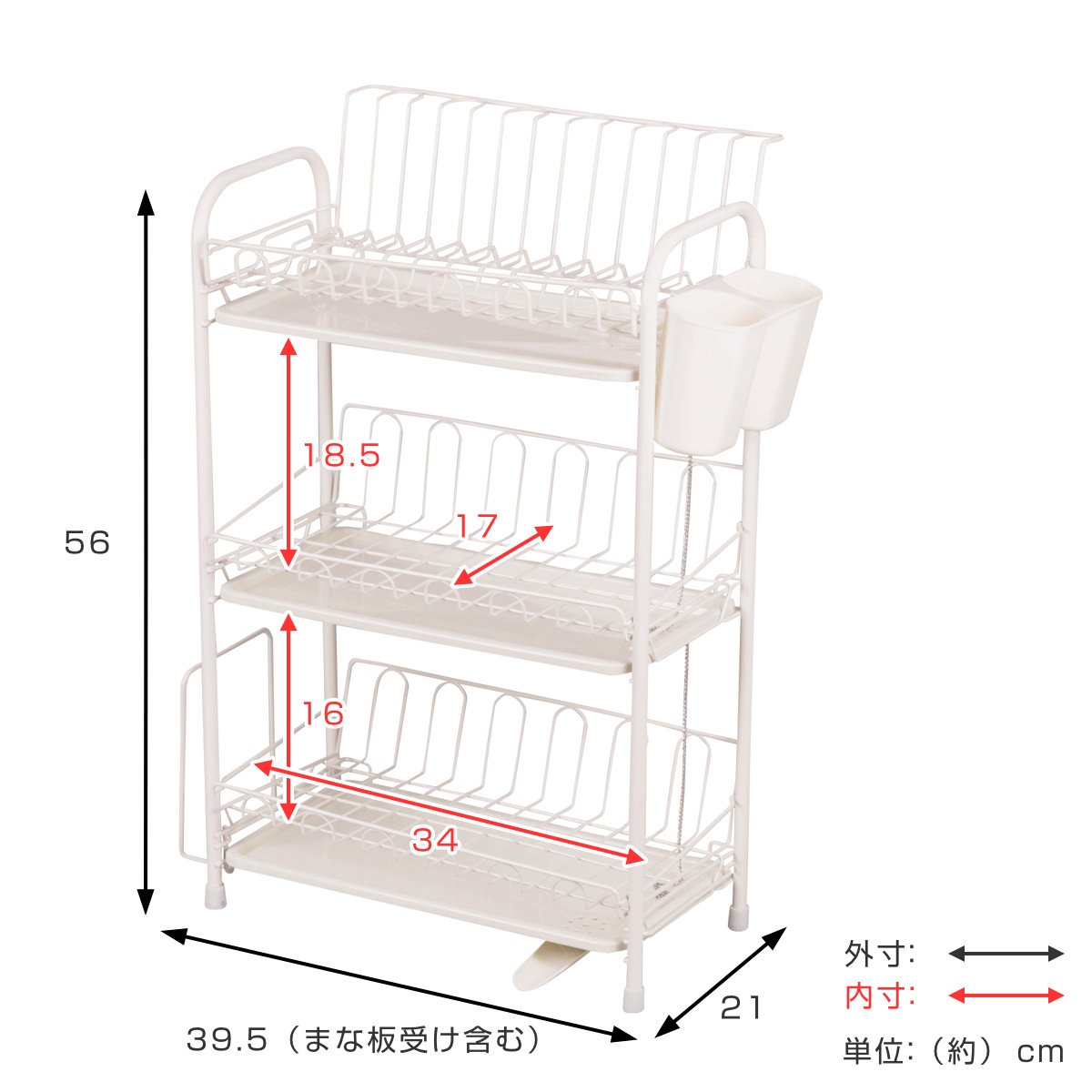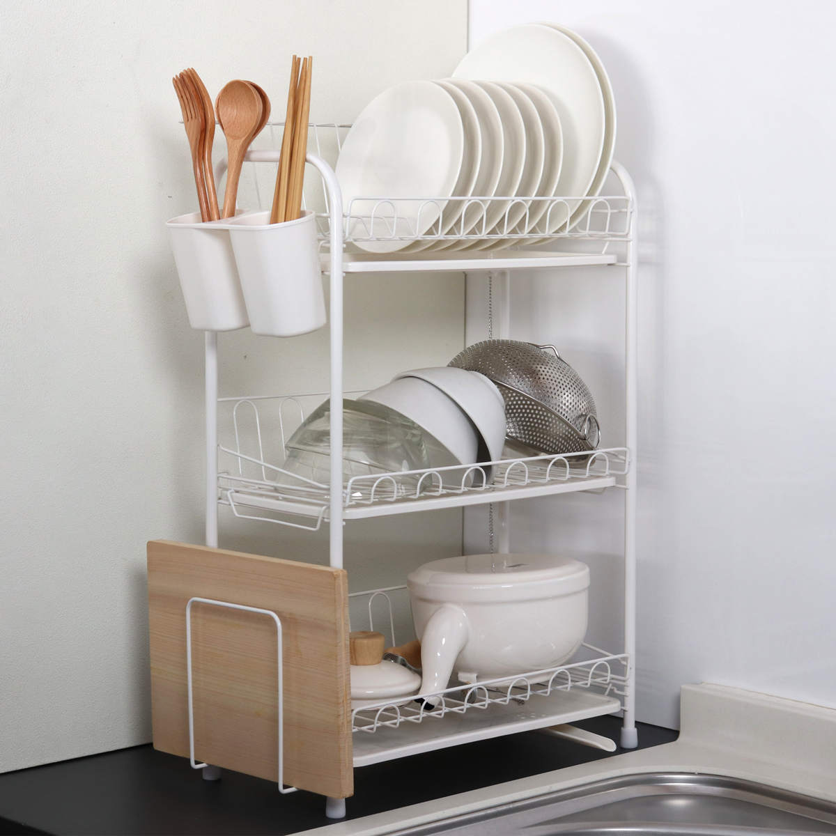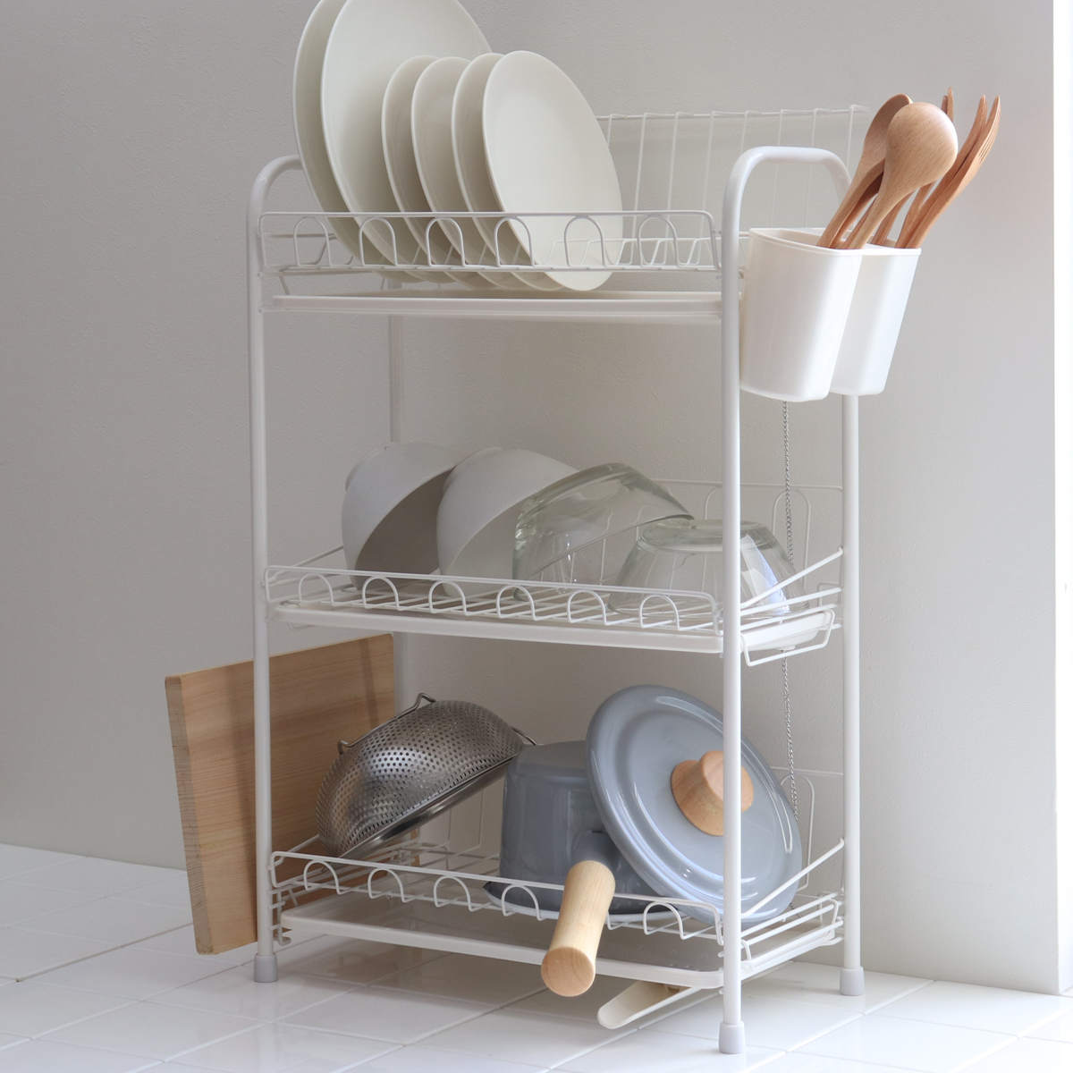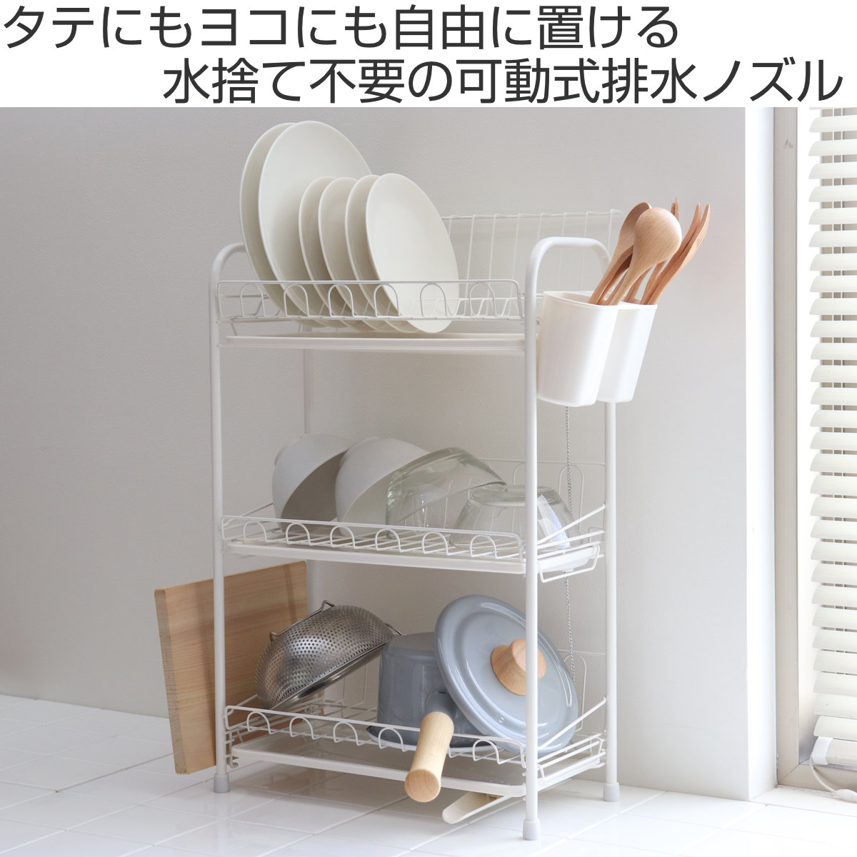 水切りラック 水切りかご アレスタ 3段 スリム 水が流れるトレー ( カトラリーポケット付き 水切りカゴ シンク上 シンクサイド 水切りバスケット 水切りトレー 大容量 水切り ラック ディッシュラック 食器 洗い 乾燥 )