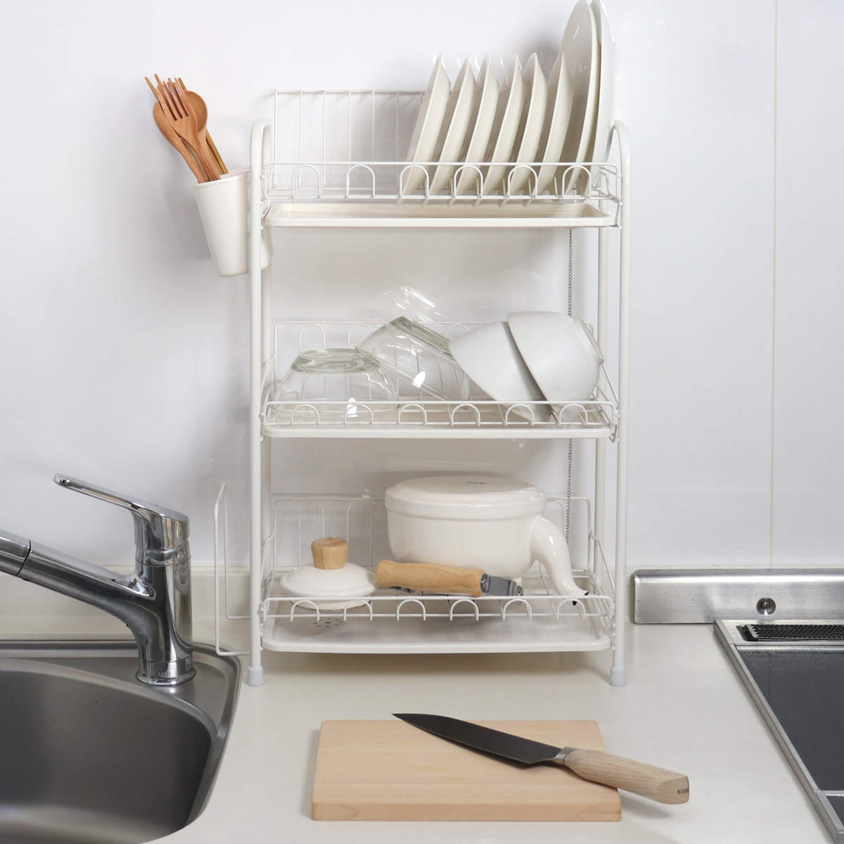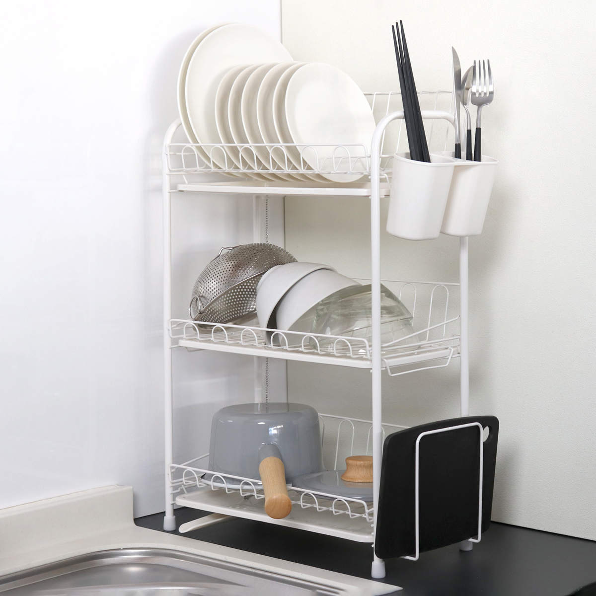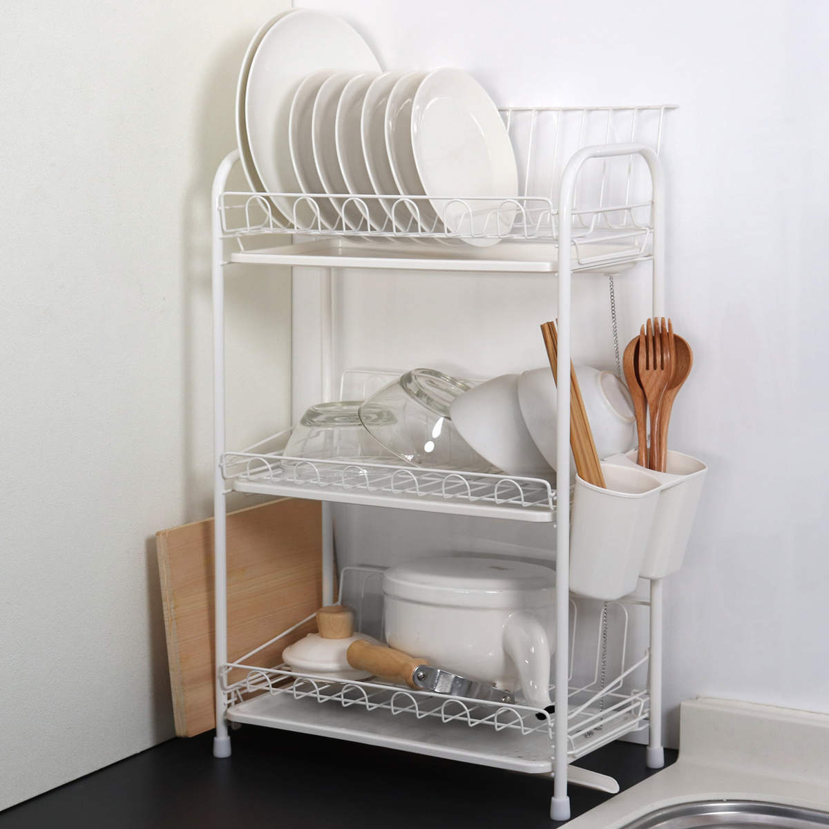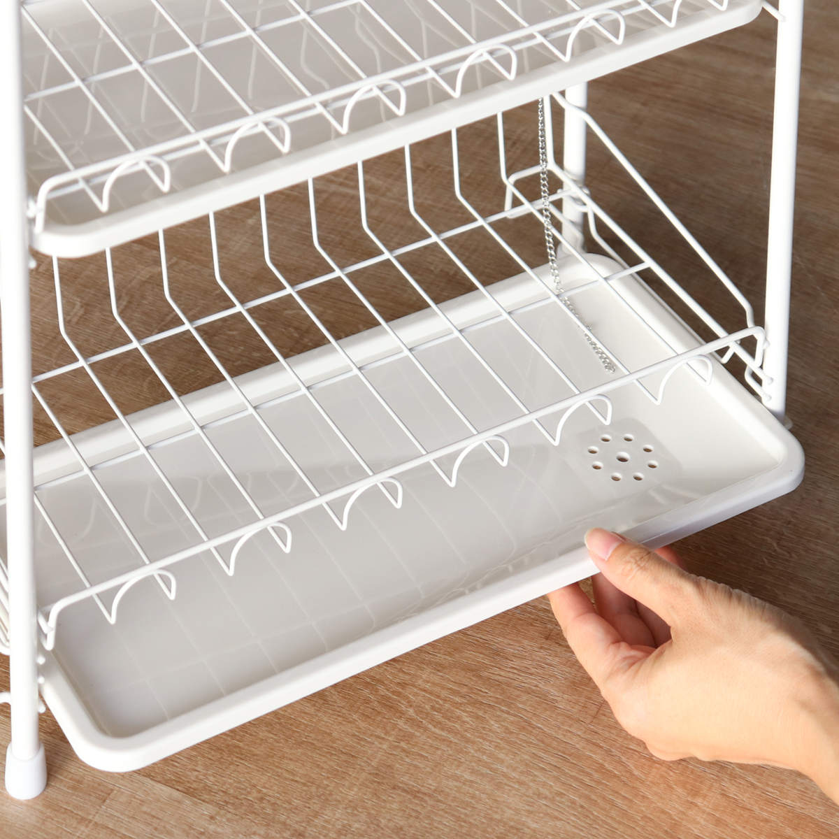 水切りラック 水切りかご アレスタ 3段 スリム 水が流れるトレー ( カトラリーポケット付き 水切りカゴ シンク上 シンクサイド 水切りバスケット 水切りトレー 大容量 水切り ラック ディッシュラック 食器 洗い 乾燥 )