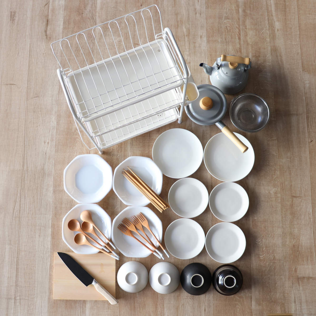 4人分の食器がまとめて入る大容量サイズです。少人数のご家庭では、食器に加えて鍋やフライパン、調理器具もまとめて収納できます。