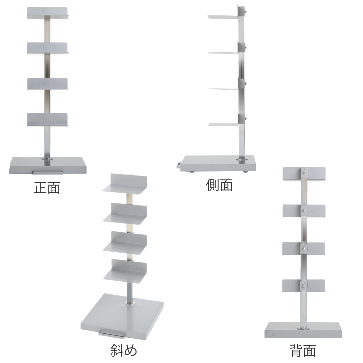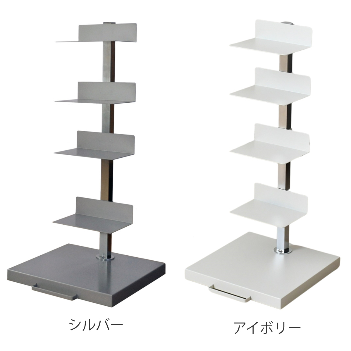 | 材質 | 棚、ベース:スチール、メラミン焼付塗装 支柱:スチール、クロムメッキ |