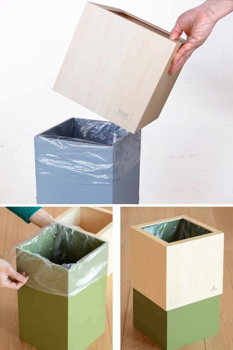 木製のゴミ箱はフローリングや畳など様々な空間に調和し、洋室・和室を問わずお使いいただけます。