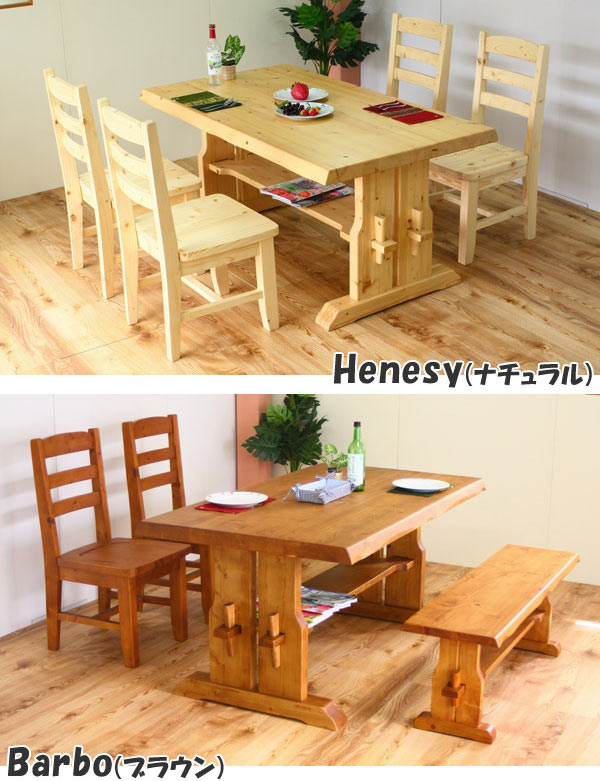 ●天然木製のパイン材を使用した、カントリー感あふれるダイニングシリーズのヘネシーとバーボ。