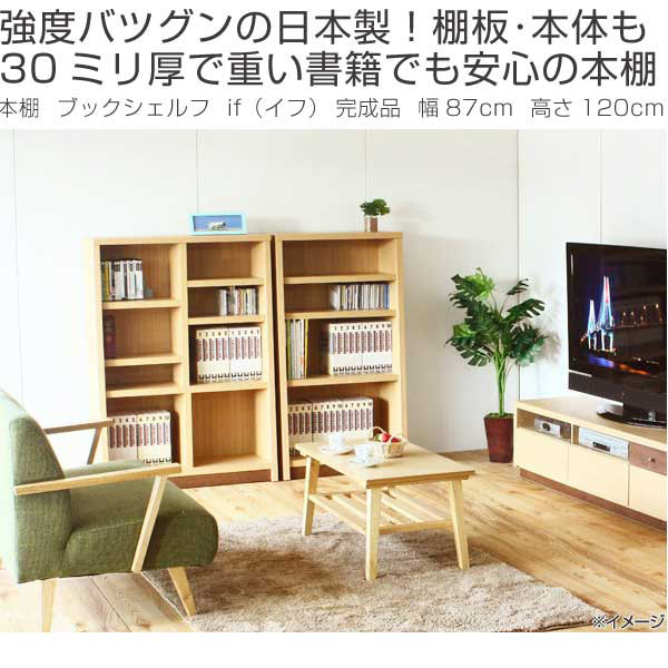 強度バツグンの日本製!棚板も30ミリ厚で重い書籍でも安心