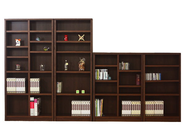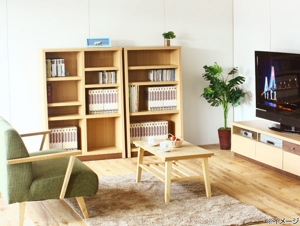 棚板は重い本でも耐えられる30ミリ厚を使用、ソリがなく丈夫です。