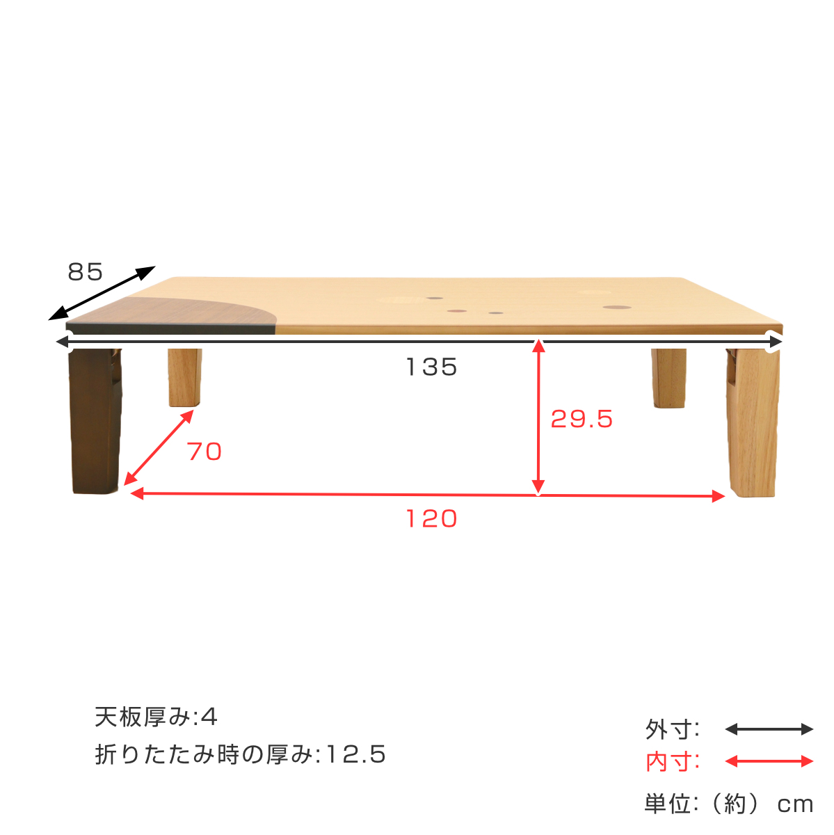 天板サイズは幅135cm×奥行85cmで3~5人が快適に囲めるローテーブル。この1台で食事も勉強もしたくなる安定感のあるテーブルです。ホッと心が和むやさしい色合いがお部屋の雰囲気を明るくします。