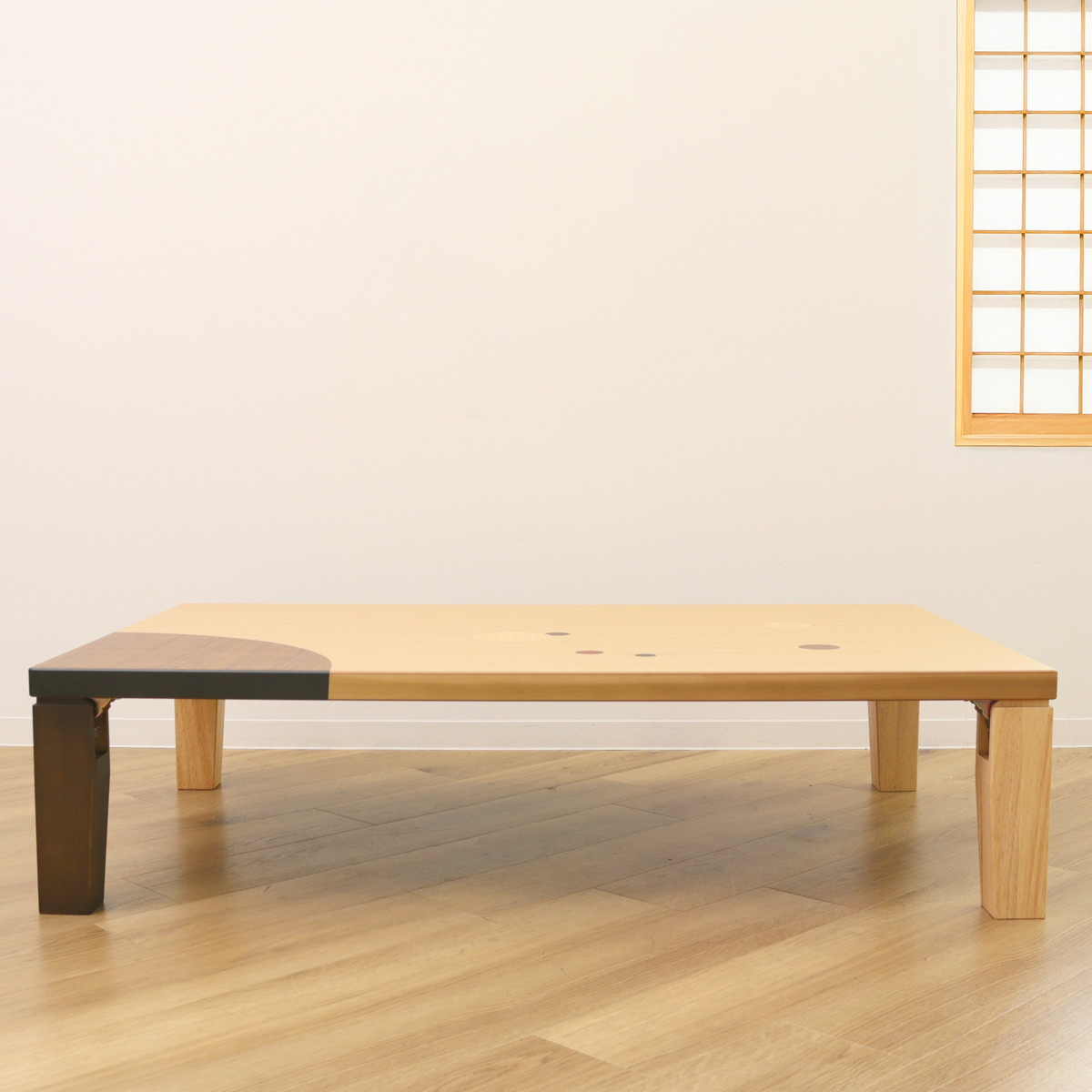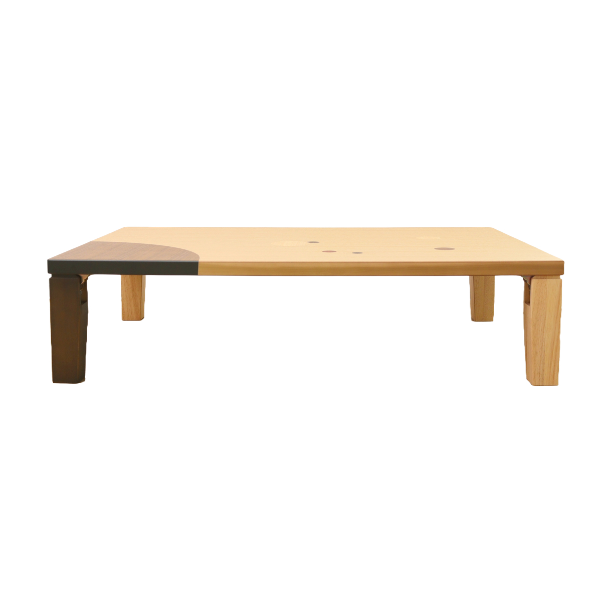 ランダムに水玉模様の変化貼りを施した遊び心ある天板と脚の色が異なるデザインは、個性的でアクセントになります。和室から洋室までお部屋のインテリアを選ばず合わせられます。