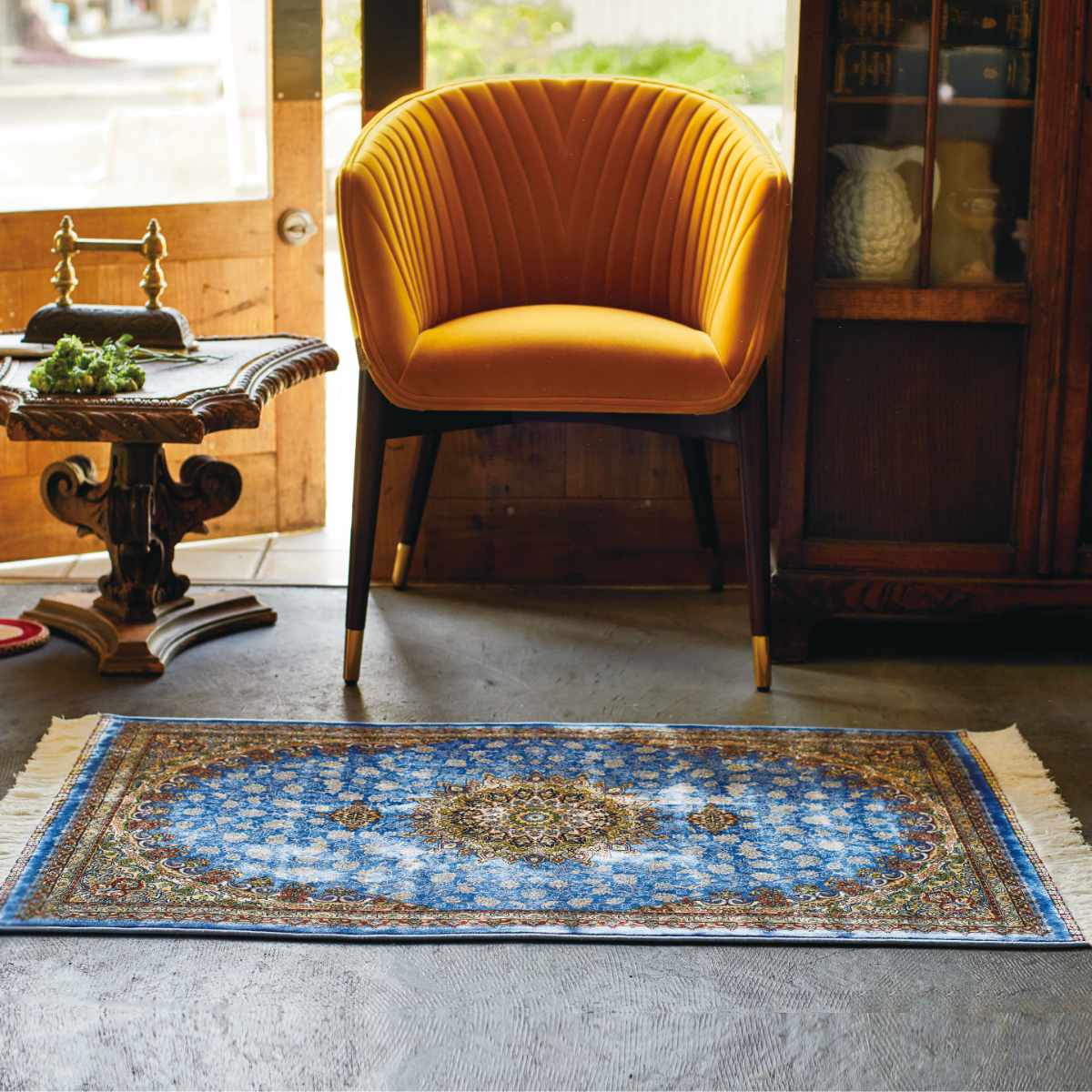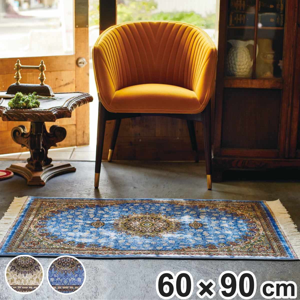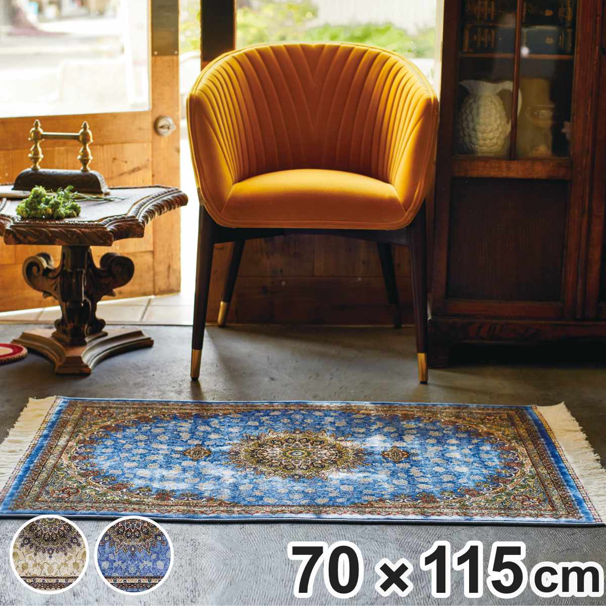 曲線美と華やかなメダリオン柄のウィルトン織りマット