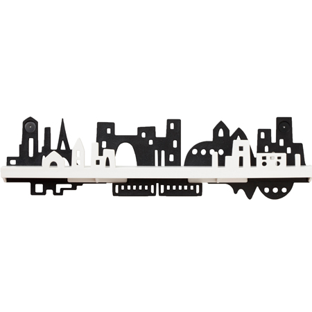●街のシルエットの立体部分にネックレスなどのアクセサリーを掛けることができます。