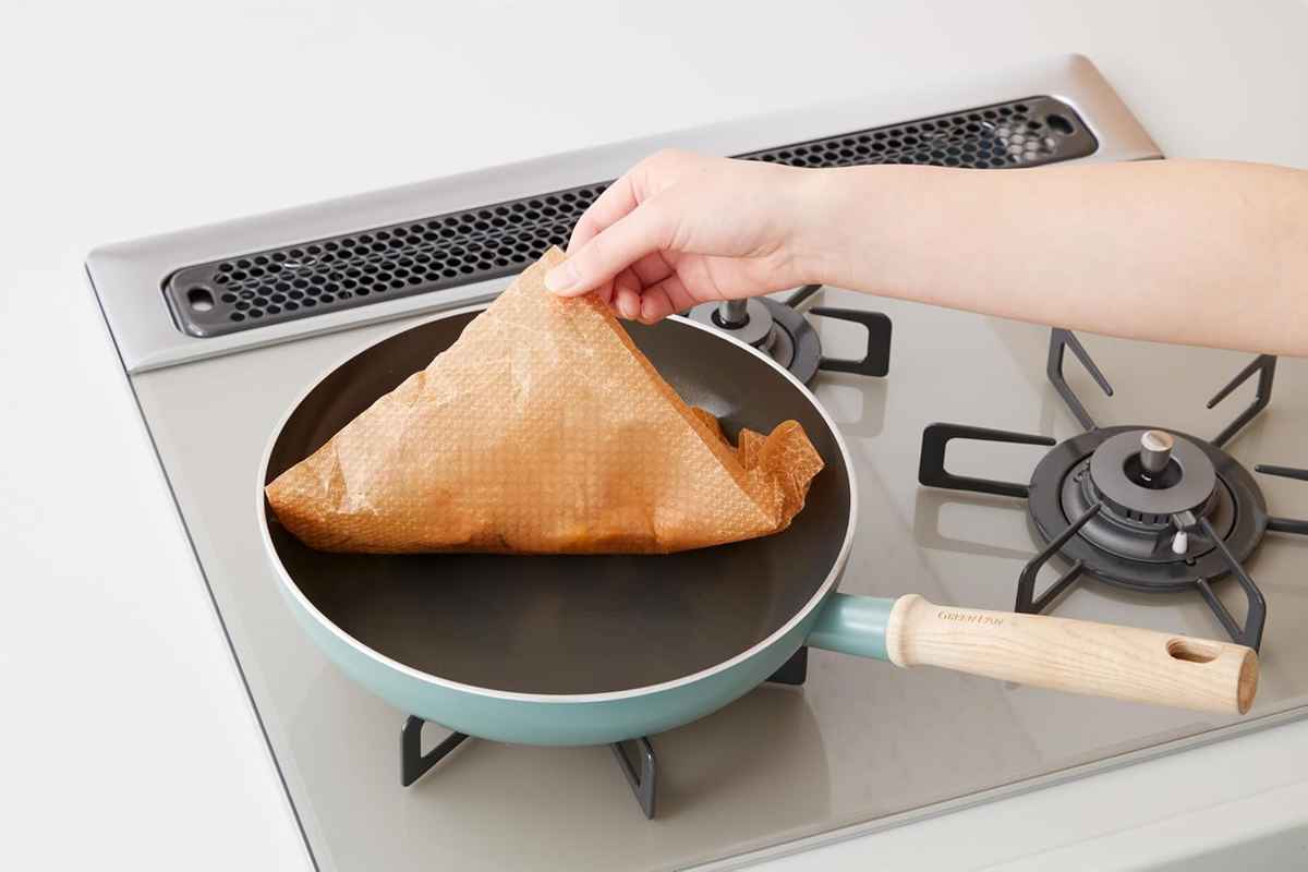 下ごしらえ後、そのままフライパンへ移して調理できます。両面にシリコーン加工を施しているため、食材がくっつきにくく、焦げ付きを防ぎます。また、フライパンが汚れにくいので後片付けも簡単です。