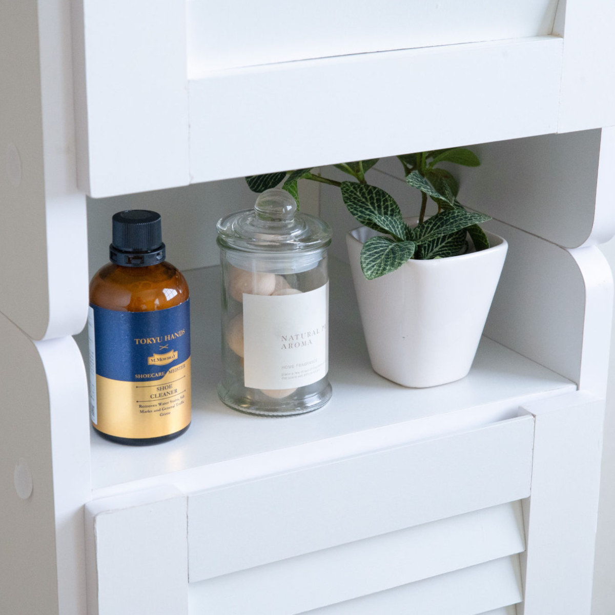 棚板は3段階の調節が可能です。棚板を外せばブーツや長靴など、丈の長い靴も収納できます。