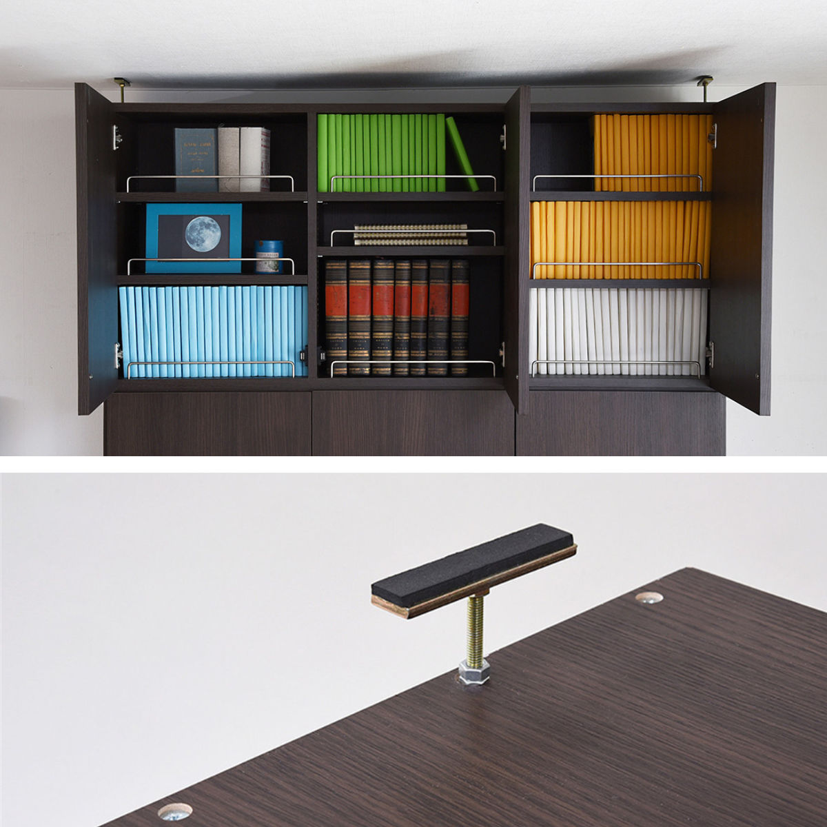 天井までスッキリの上置き収納 突っ張り金具で耐震対策