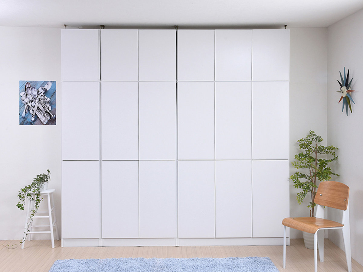 同じシリーズで組み合わせると、お部屋の広さに合わせて収納力をアップでき、スッキリと統一感のある壁面収納としてお使いいただけます。