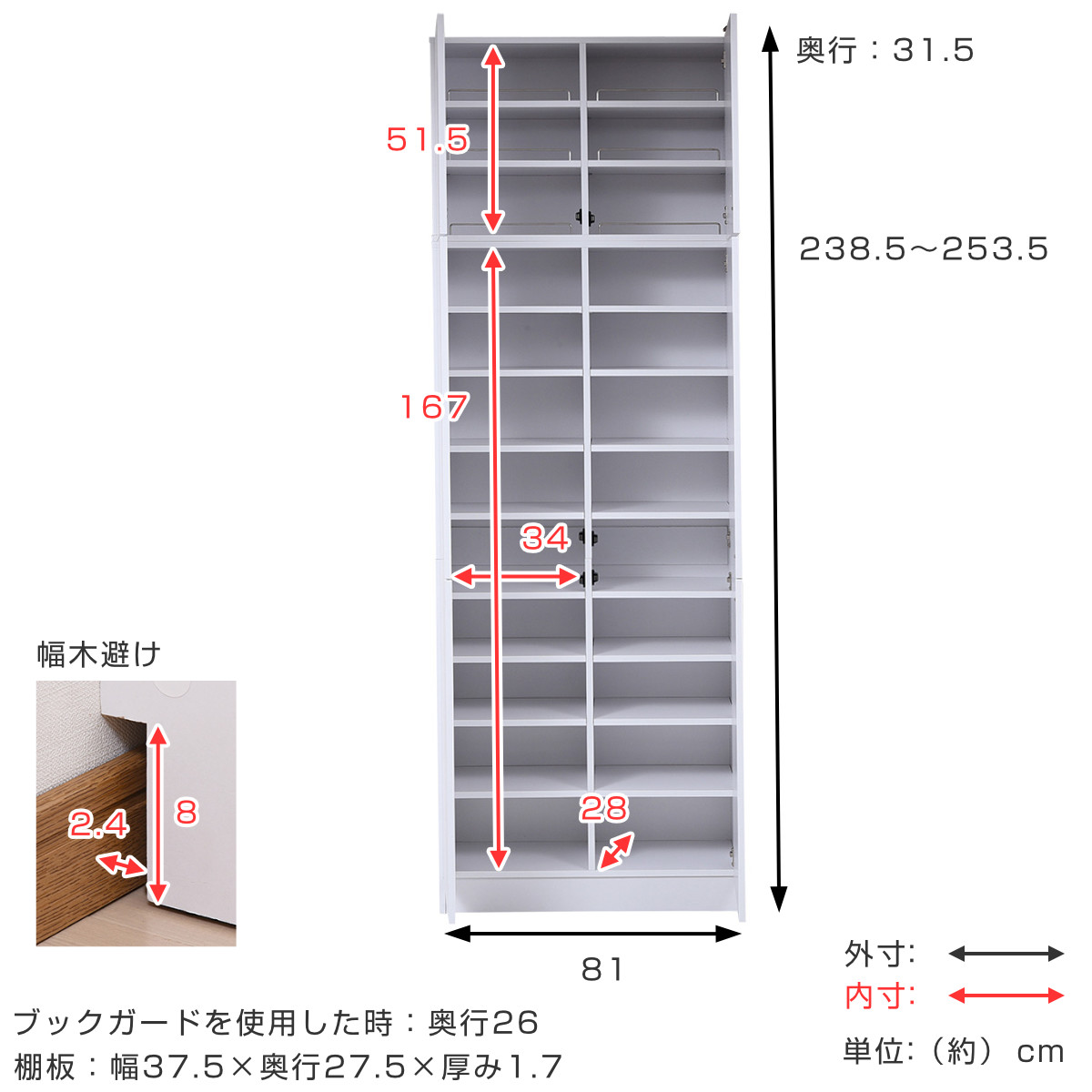 | サイズ | 【本体】約 幅81×奥行31.5×高さ180.5(cm) 【上置き】外寸:約 幅81×奥行31.5×高さ58~73(cm) |