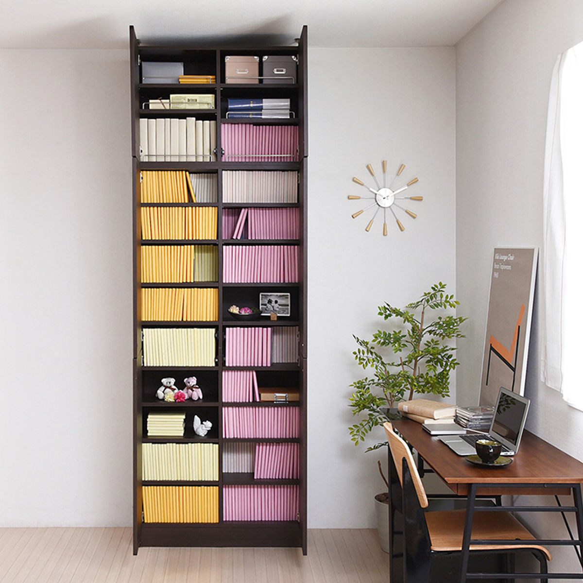 扉付きなので、見た目もスッキリとスマートな空間になります。来客時などは扉を閉めておけば、目隠し扉として使うことができ便利です。書籍や雑誌以外に日用品や食料品の収納にもお使いいただけます。