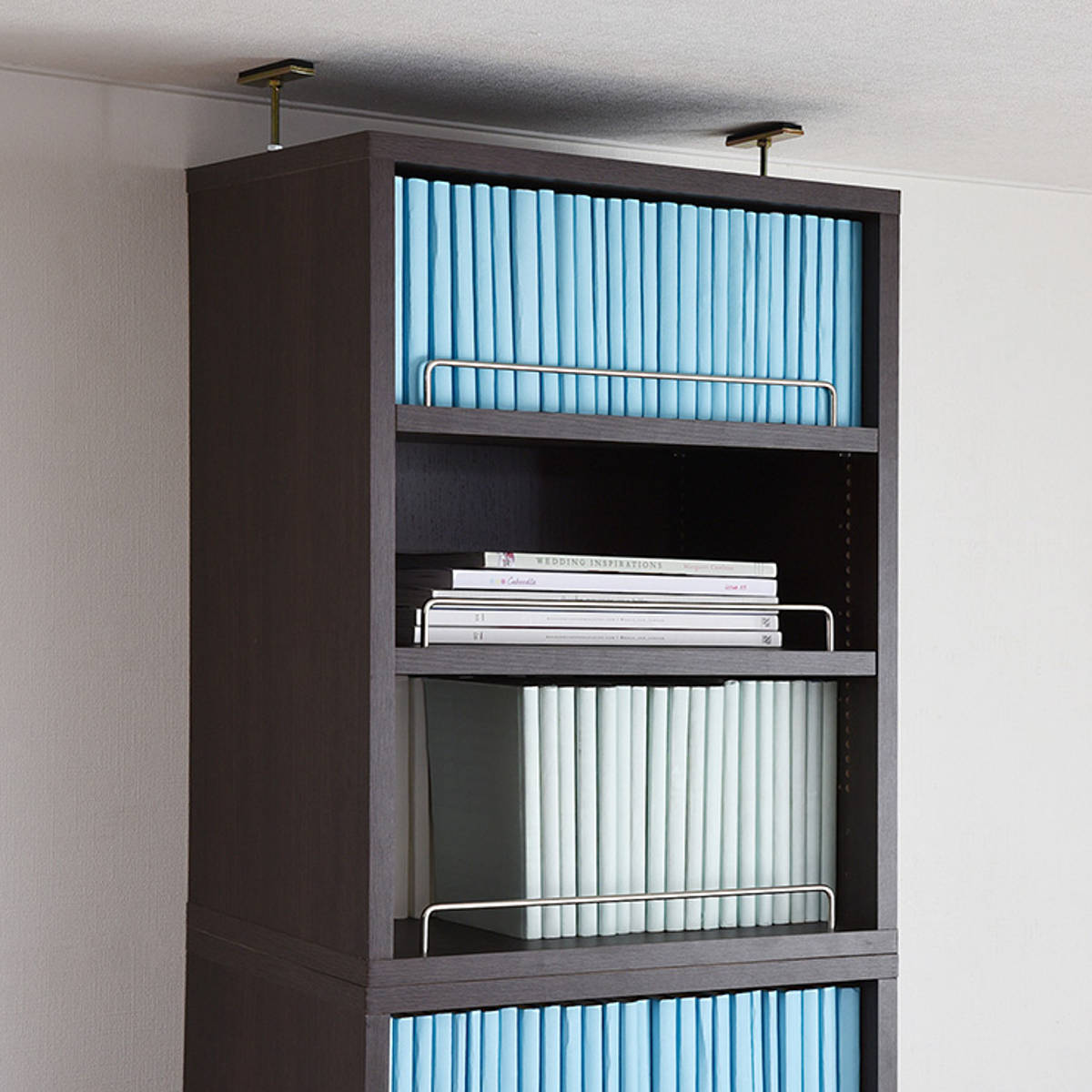 天井までスッキリの上置き収納 突っ張り金具で耐震対策