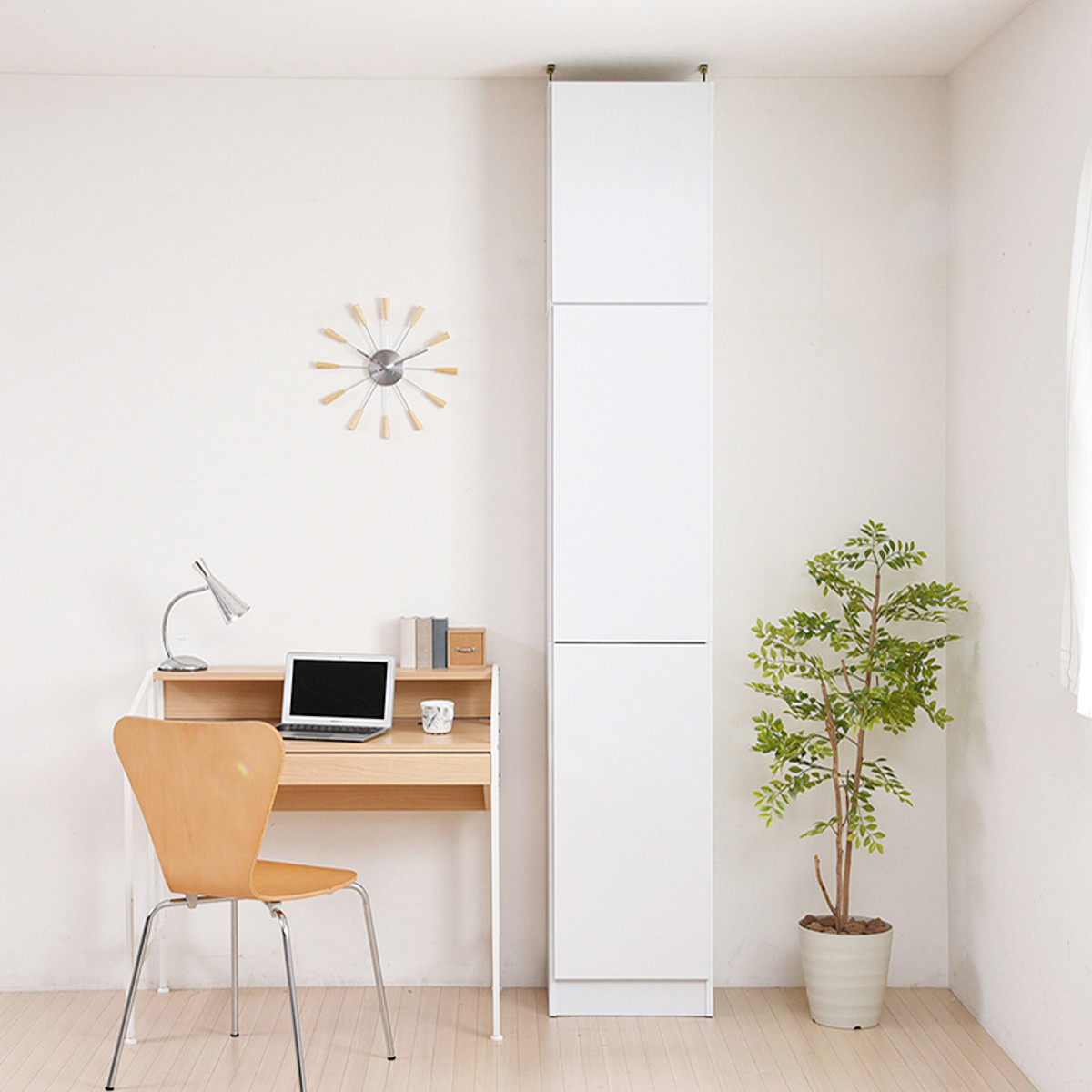 天井までスッキリ収納できる上置き棚がセットです。突っ張り金具で天井の高さによって突っ張りの長さを調節できるので、どんな場所でも安心です。