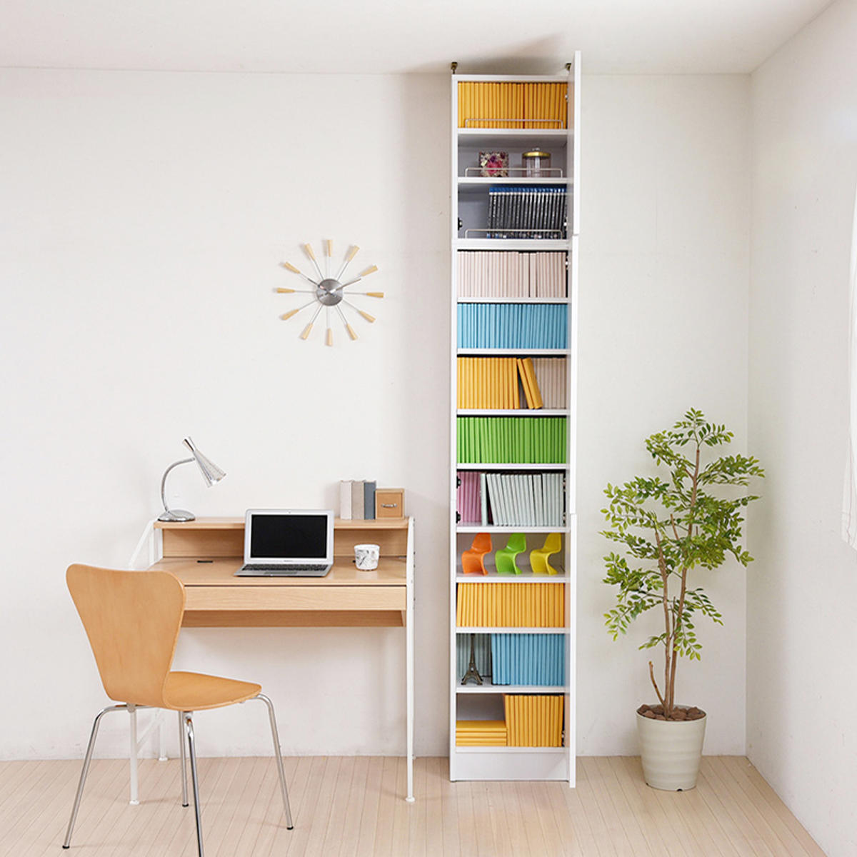 1cm間隔で棚板が設置できるスリムなのに大容量収納の本棚