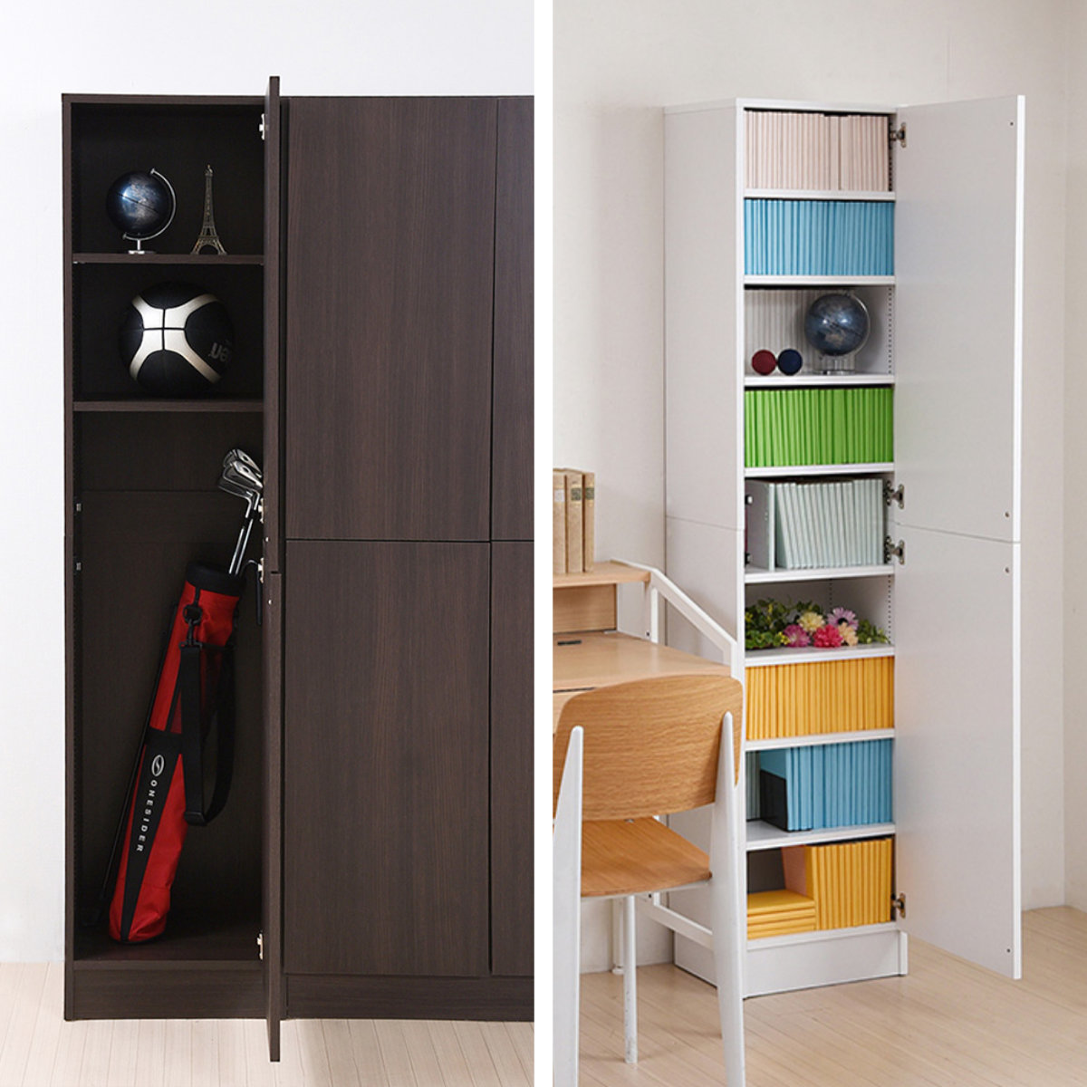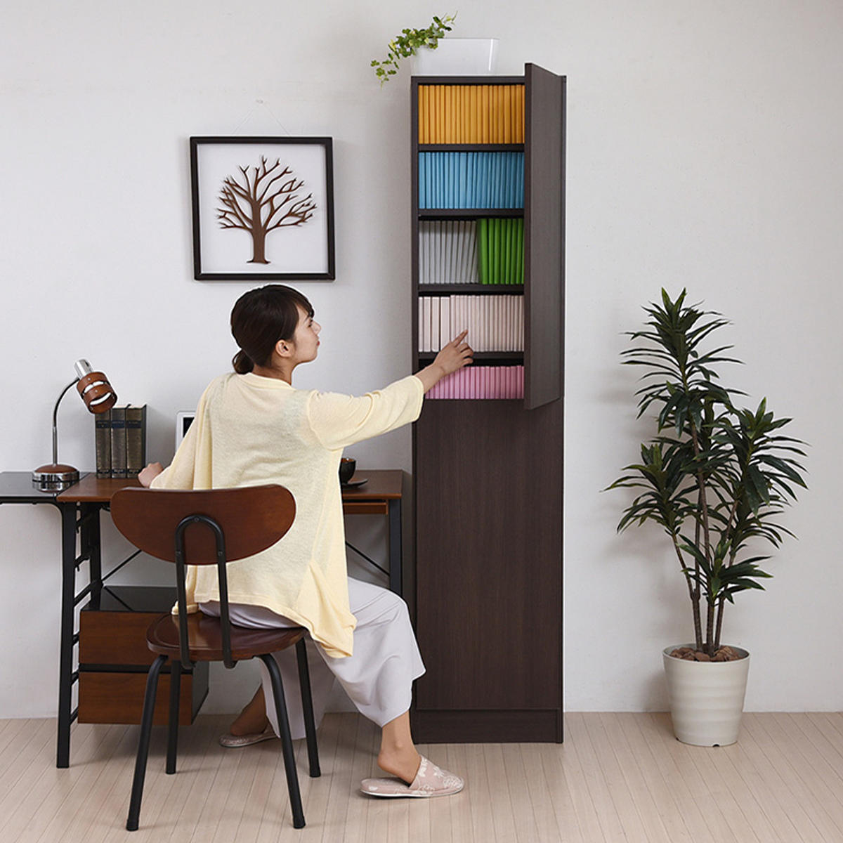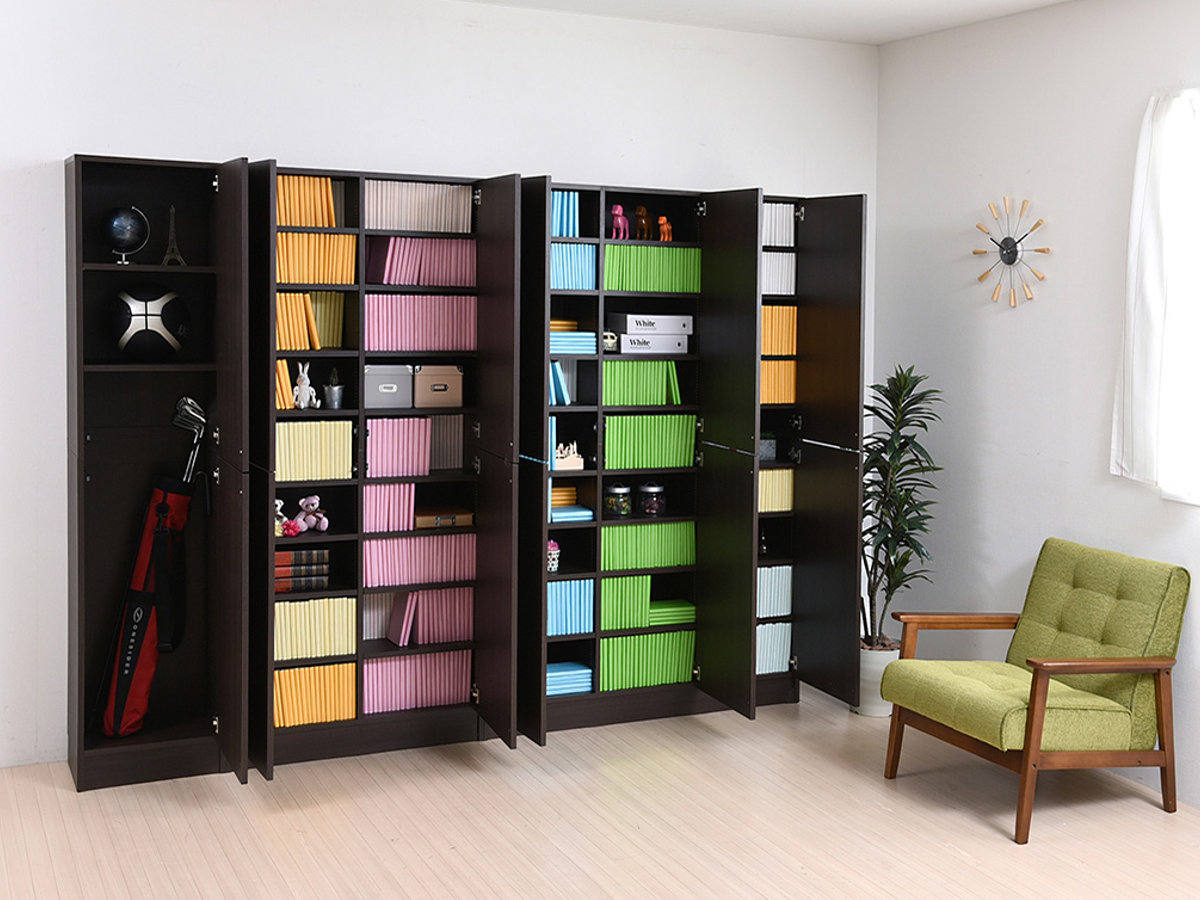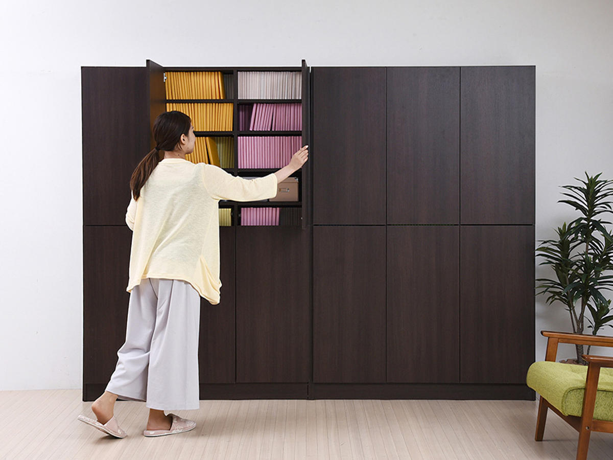 扉付きなので、見た目もスッキリとスマートな空間になります。来客時などは扉を閉めておけば、目隠し扉として使うことができ便利です。書籍や雑誌以外に日用品や食料品の収納にもお使いいただけます。