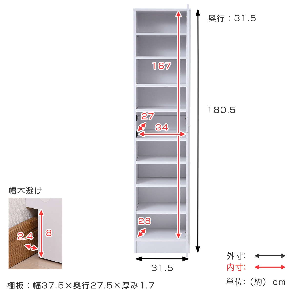 - 約幅41.5×奥行31.5×高さ180.5cm
