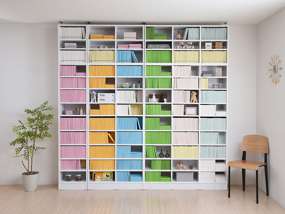 1cm間隔で棚板が設置できる大容量収納の本棚