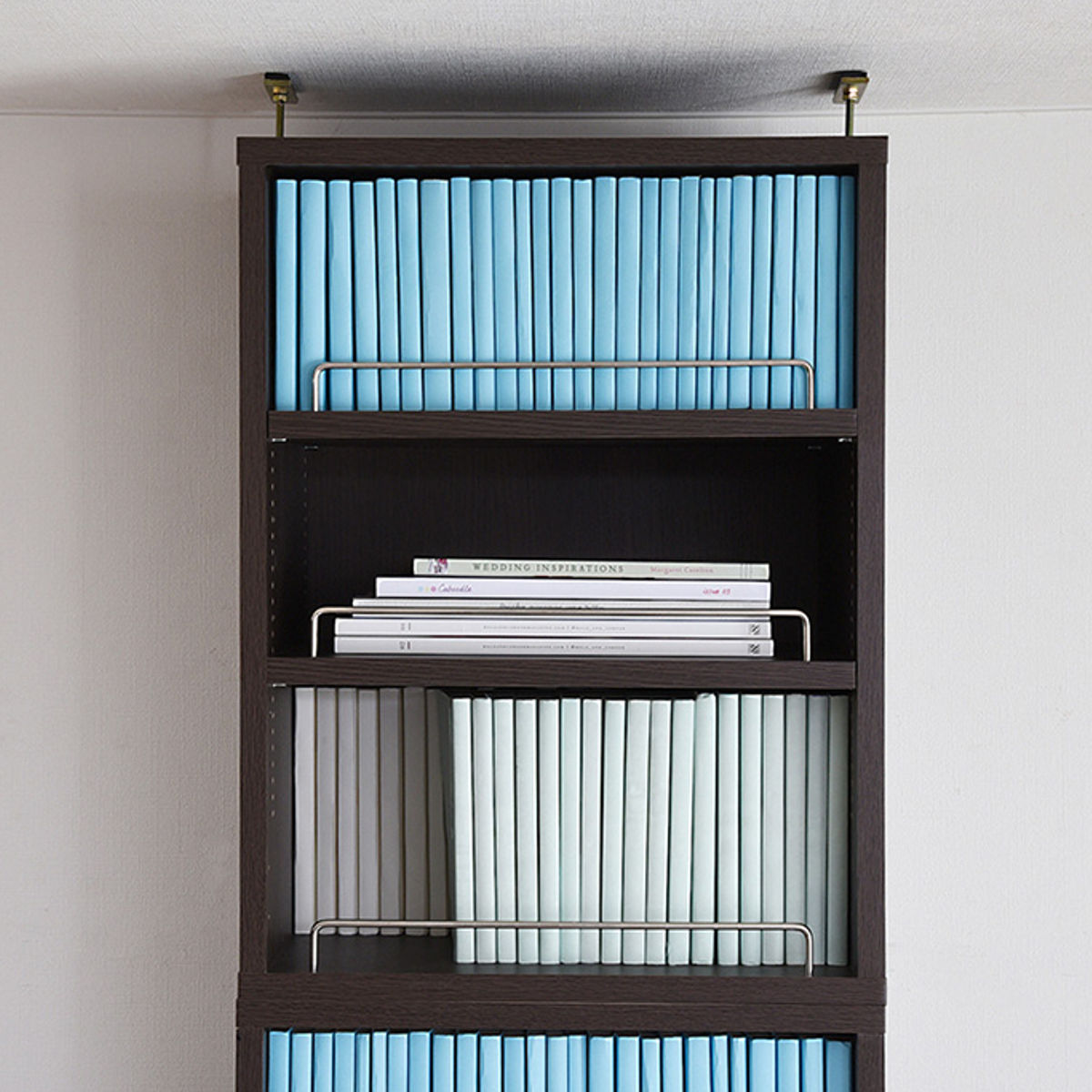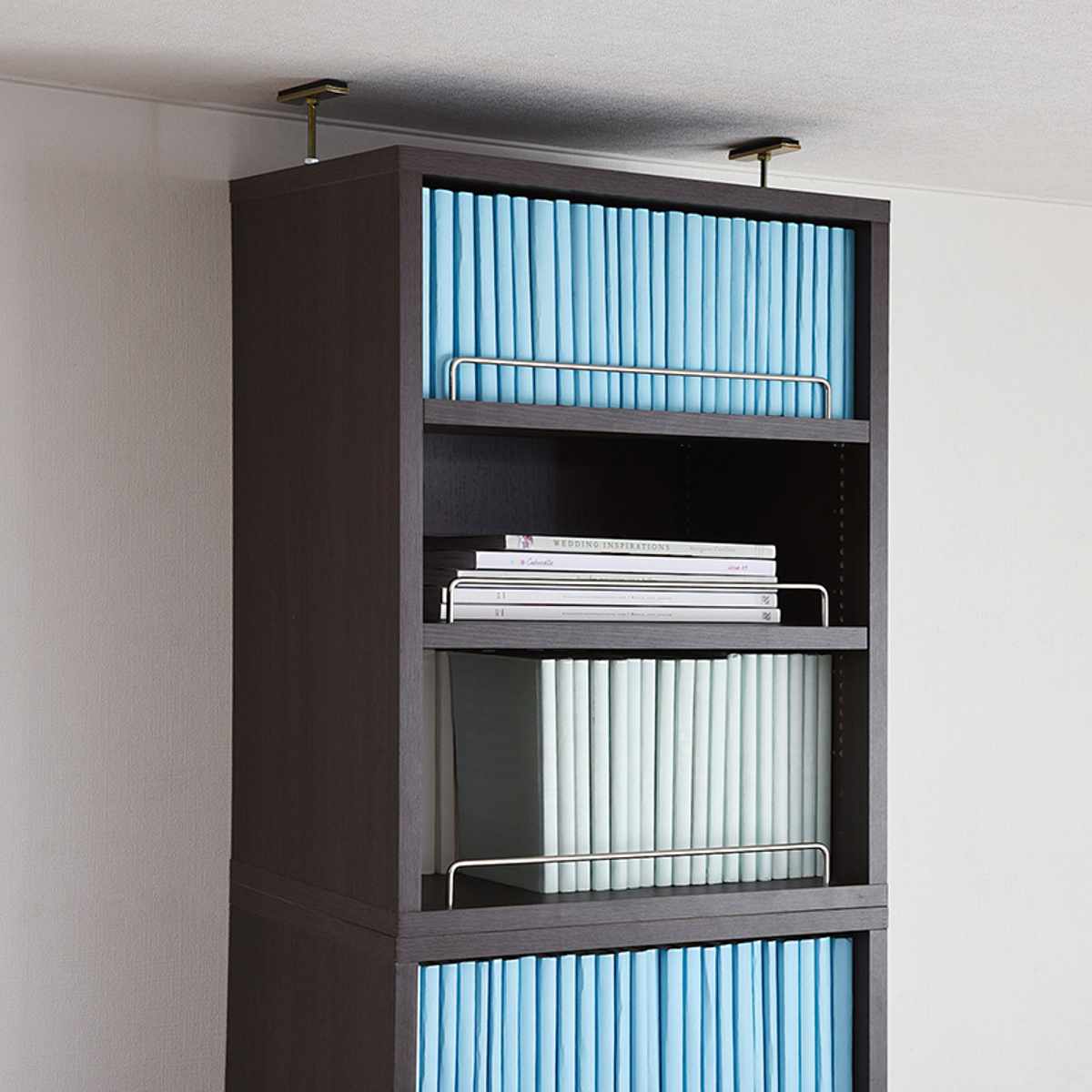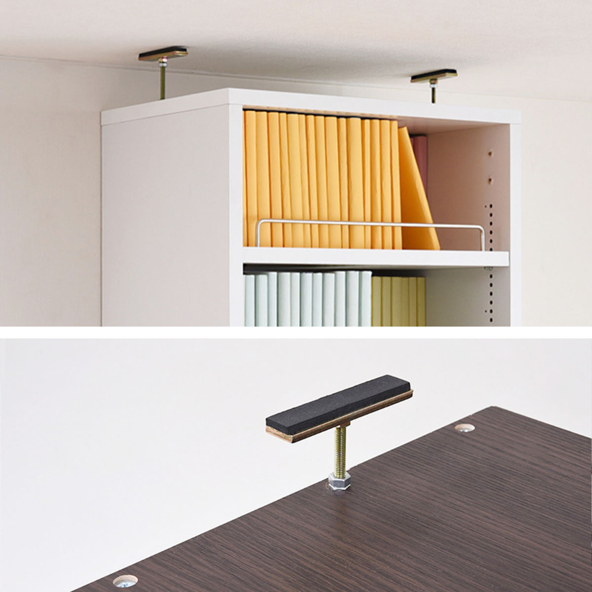 天井までスッキリの上置き収納 突っ張り金具で耐震対策