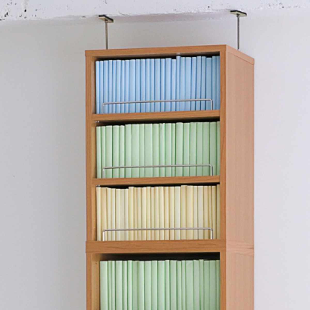段の位置がわかりやすいように6段ごとにメモリをつけました。メモリがあることで可動棚が設置しやすくなりました。