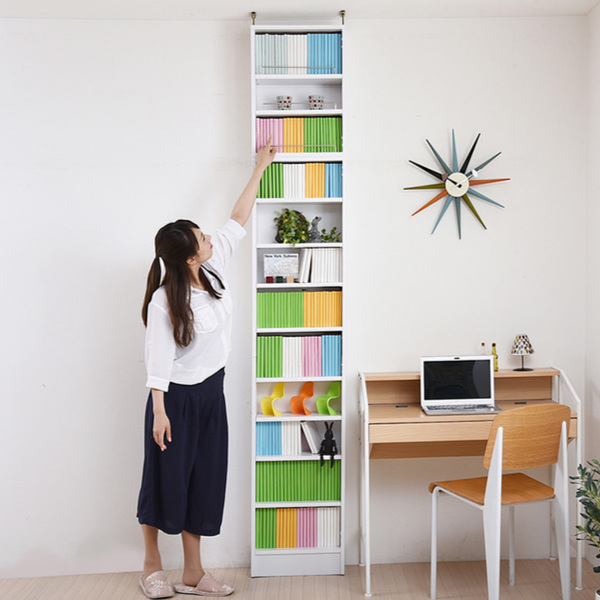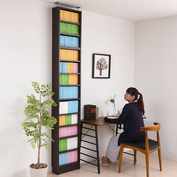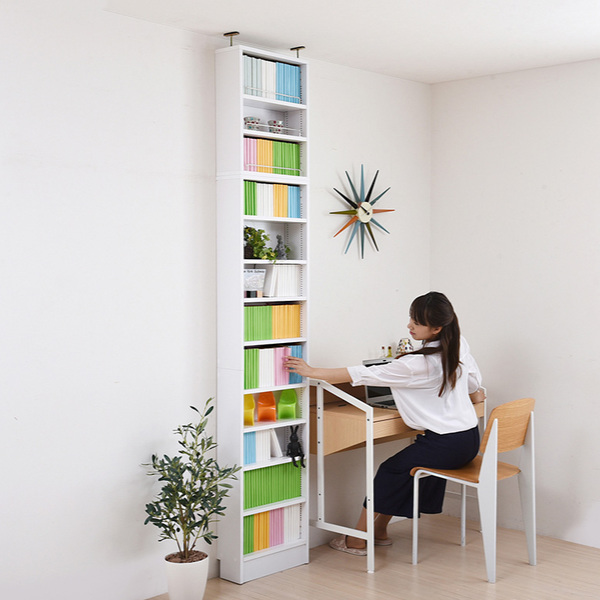 1cmピッチの可動棚で大容量収納できる薄型ブックシェルフ