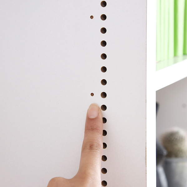棚板を変える際、位置がわかりやすいように6段ごとに目印になるメモリをつけました。
