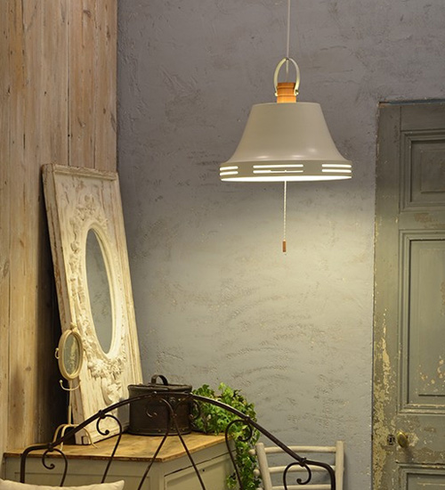 チェーンを下に引くことで点灯の切り替えができます。シーンに合わせて、3灯、1灯、ナツメ灯、消灯の4パターンに切り替えていただけます。