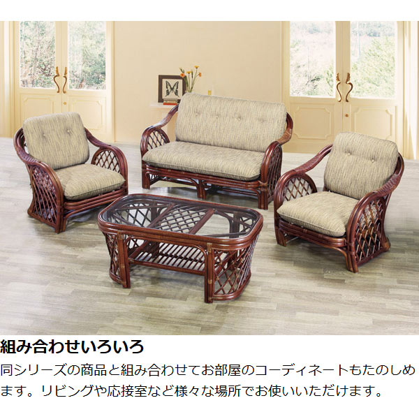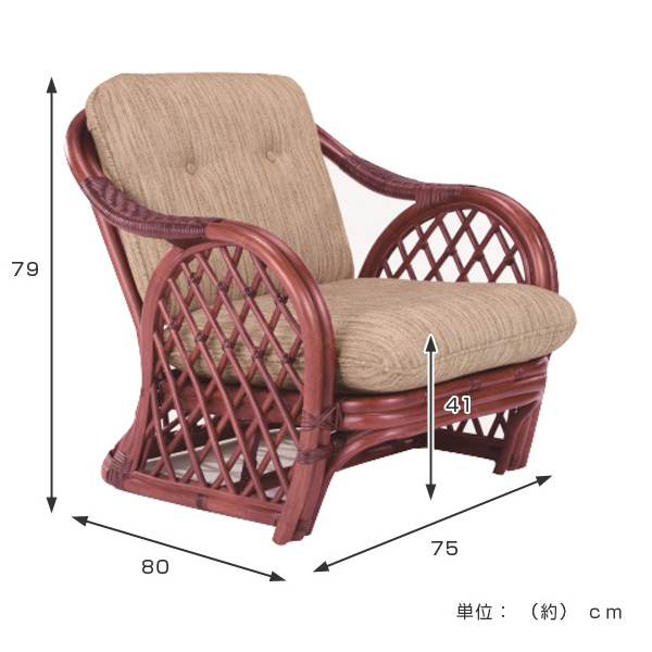 | 材質 | 本体:籐(ラタン) クッションカバー:ポリエステル42%・ポリプロピレン38%・綿20% |