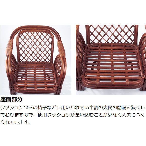 クッションつきの椅子などに用いられ太い半割の太民の間隔を狭くしておりますので、使用クッションが食い込むことが少なく丈夫につくられています。