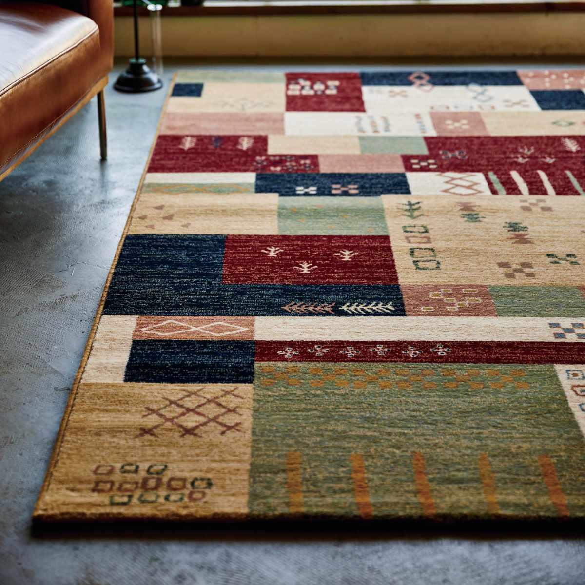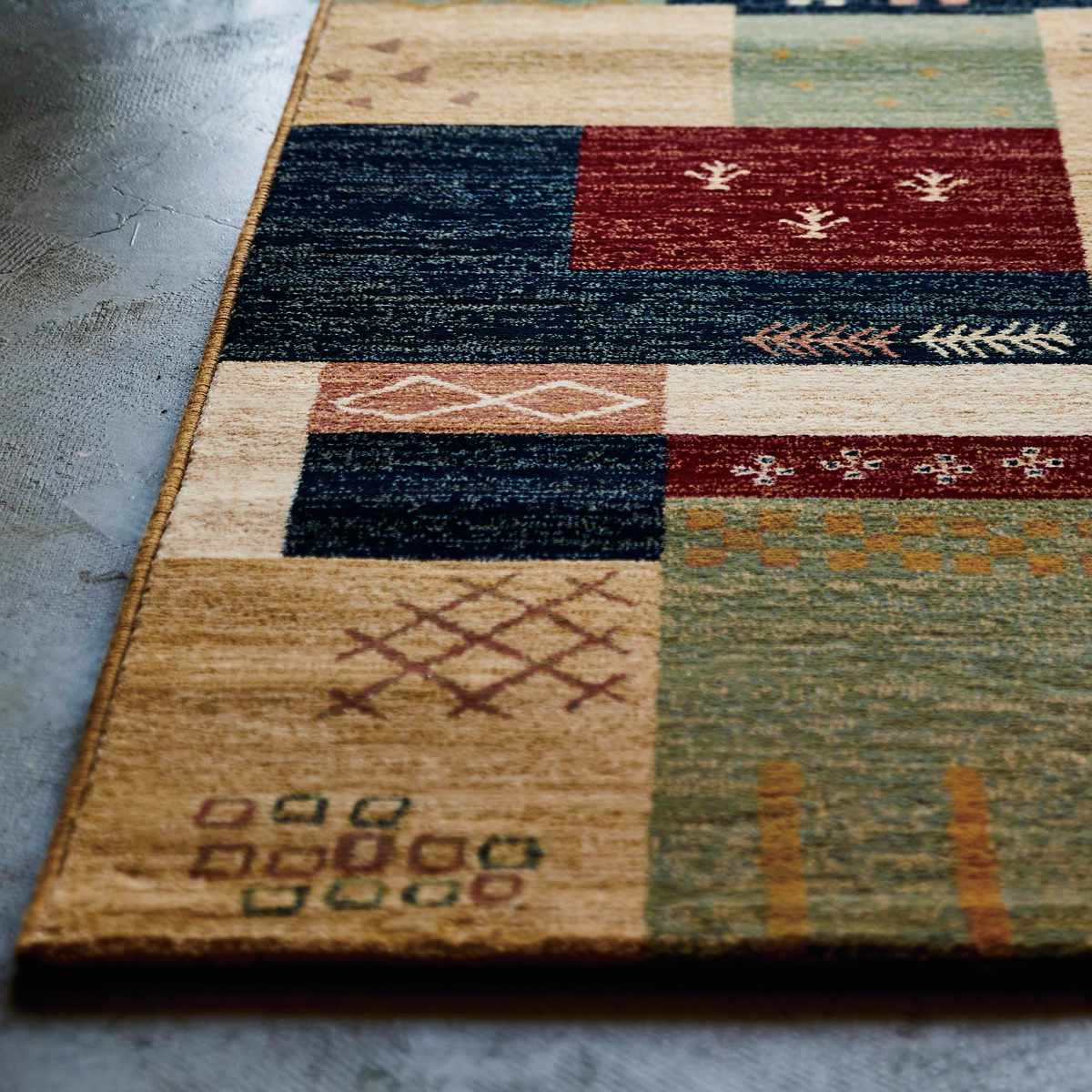 ●ギャベのような民族テイストのウィルトン織りのラグです。