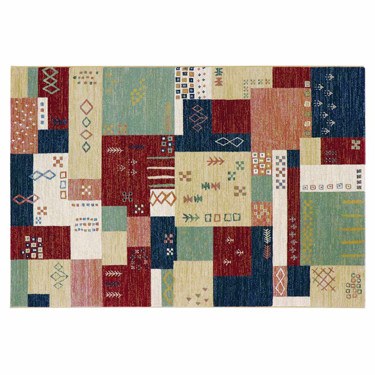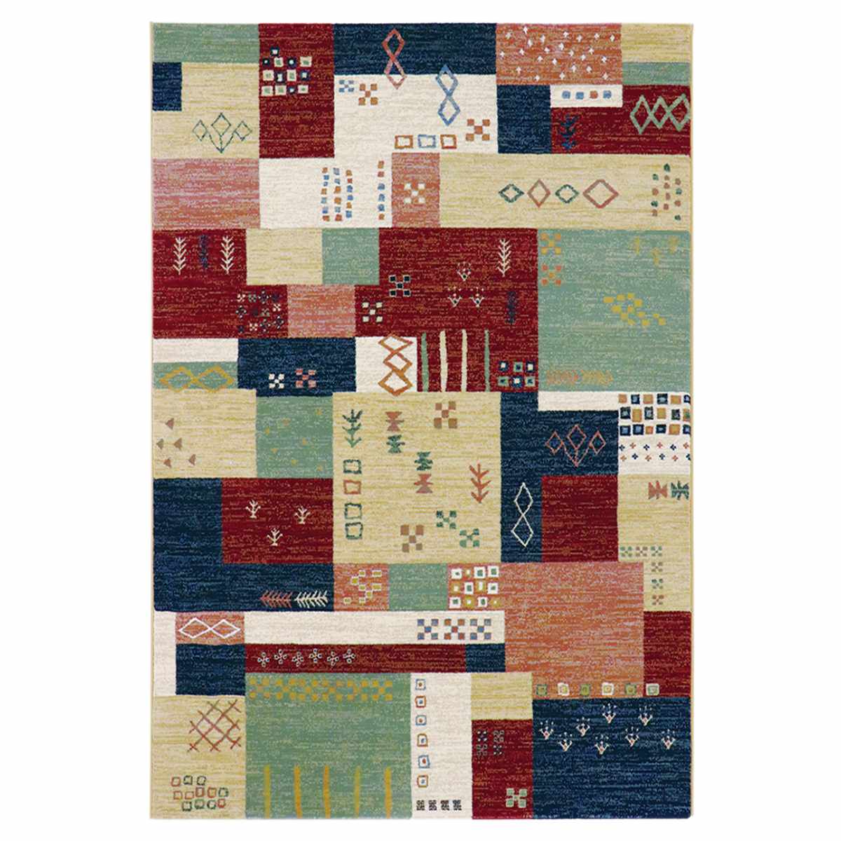 ギャベのような民族テイストのウィルトン織りのラグです。遊牧民の生活に関わる自然を取り入れたデザインで、多彩な色使いがお部屋の印象を明るくします。