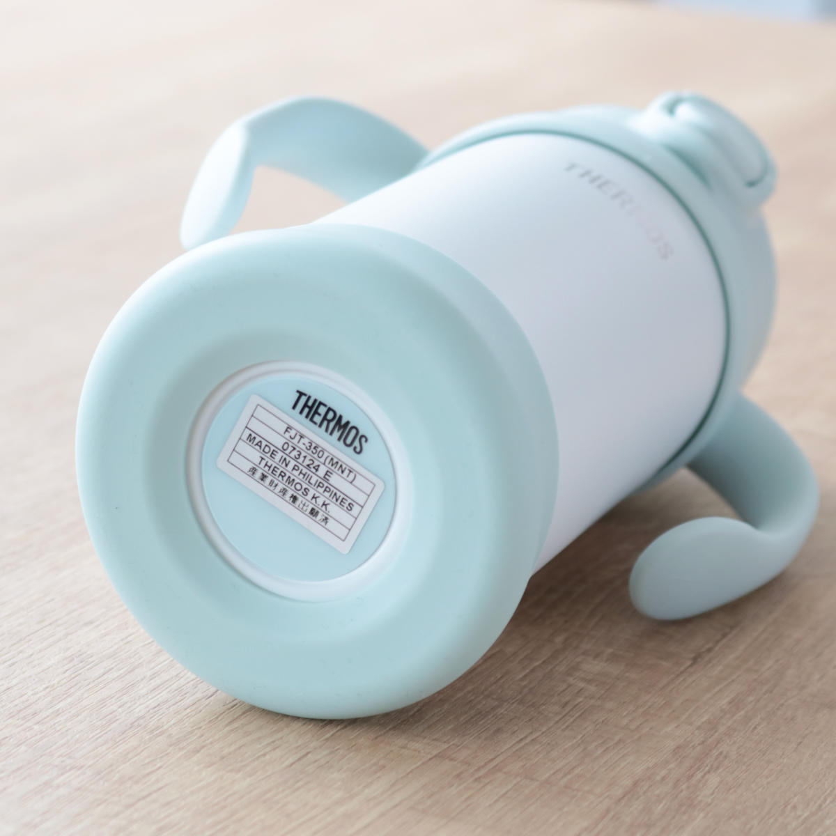 赤ちゃんの小さな手でも、しっかり持って飲みやすいベビーストローマグです。魔法びん構造なので、夏でも冷たさを長時間キープ。結露で濡れることなく快適にお使いいただけます。容量約350mlの大容量サイズです。