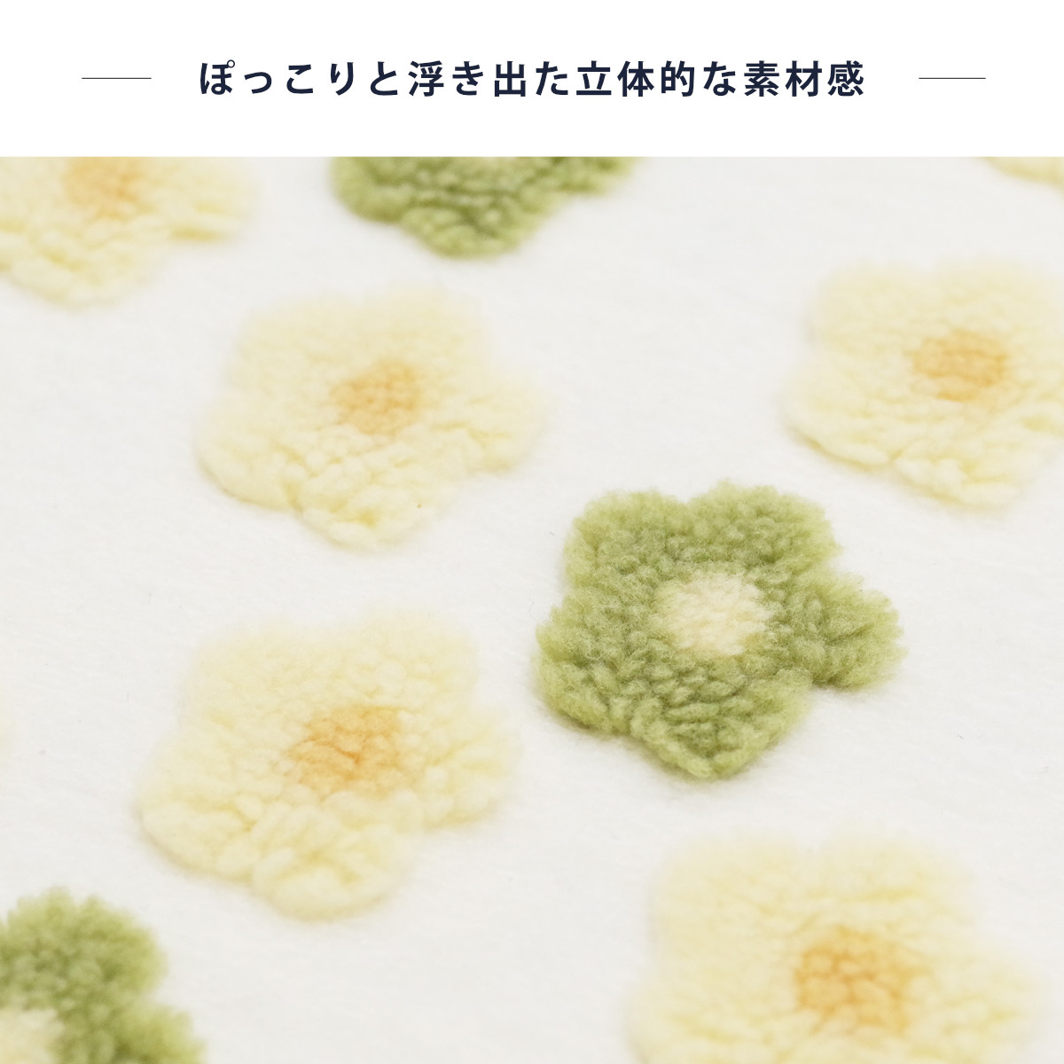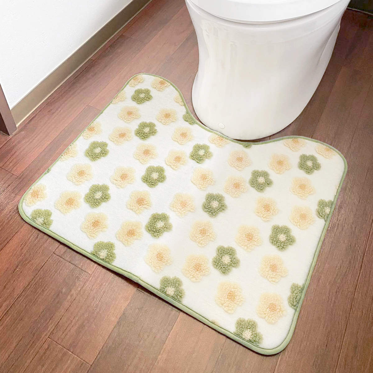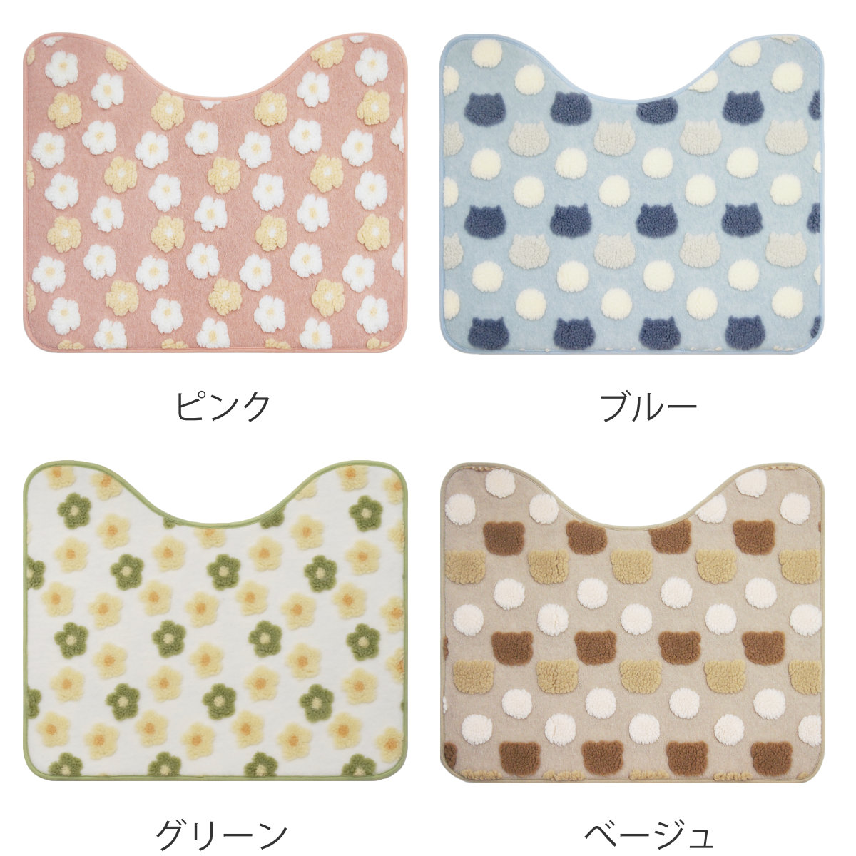 ふんわりと柔らかい肌触りが魅力のトイレマットです。明るい色味&立体感のあるおしゃれなデザインで、トイレ空間を明るく彩ります。