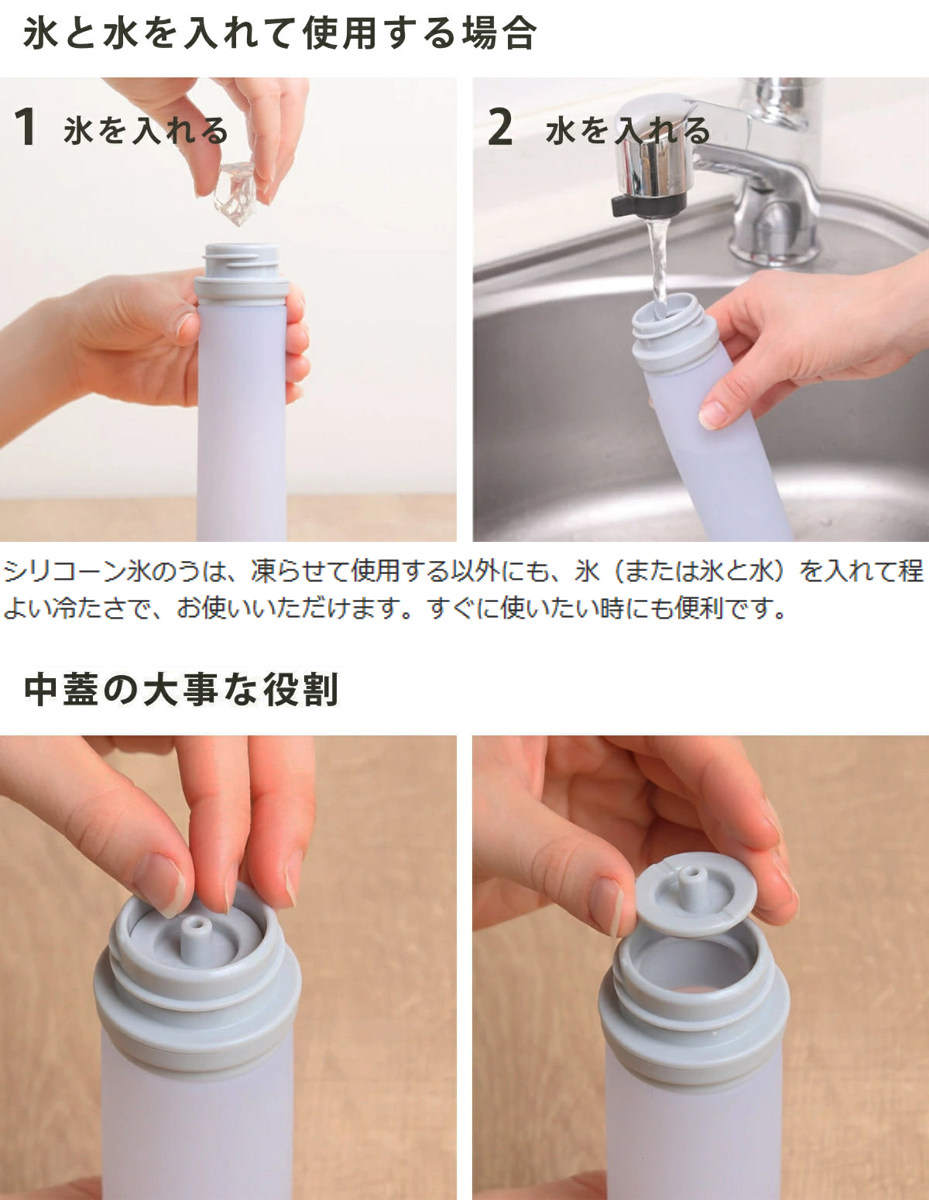 ミニ氷のうに中蓋が付属で付いています。こちらを使用することで結露防止になり、とても大事な役割を果たしてくれます。