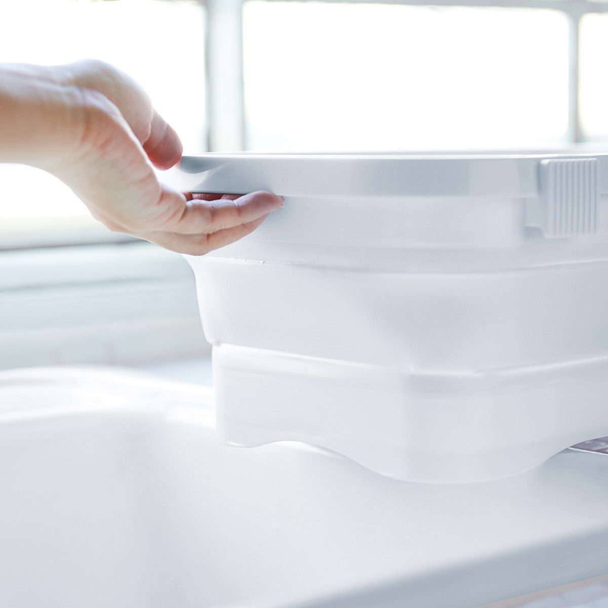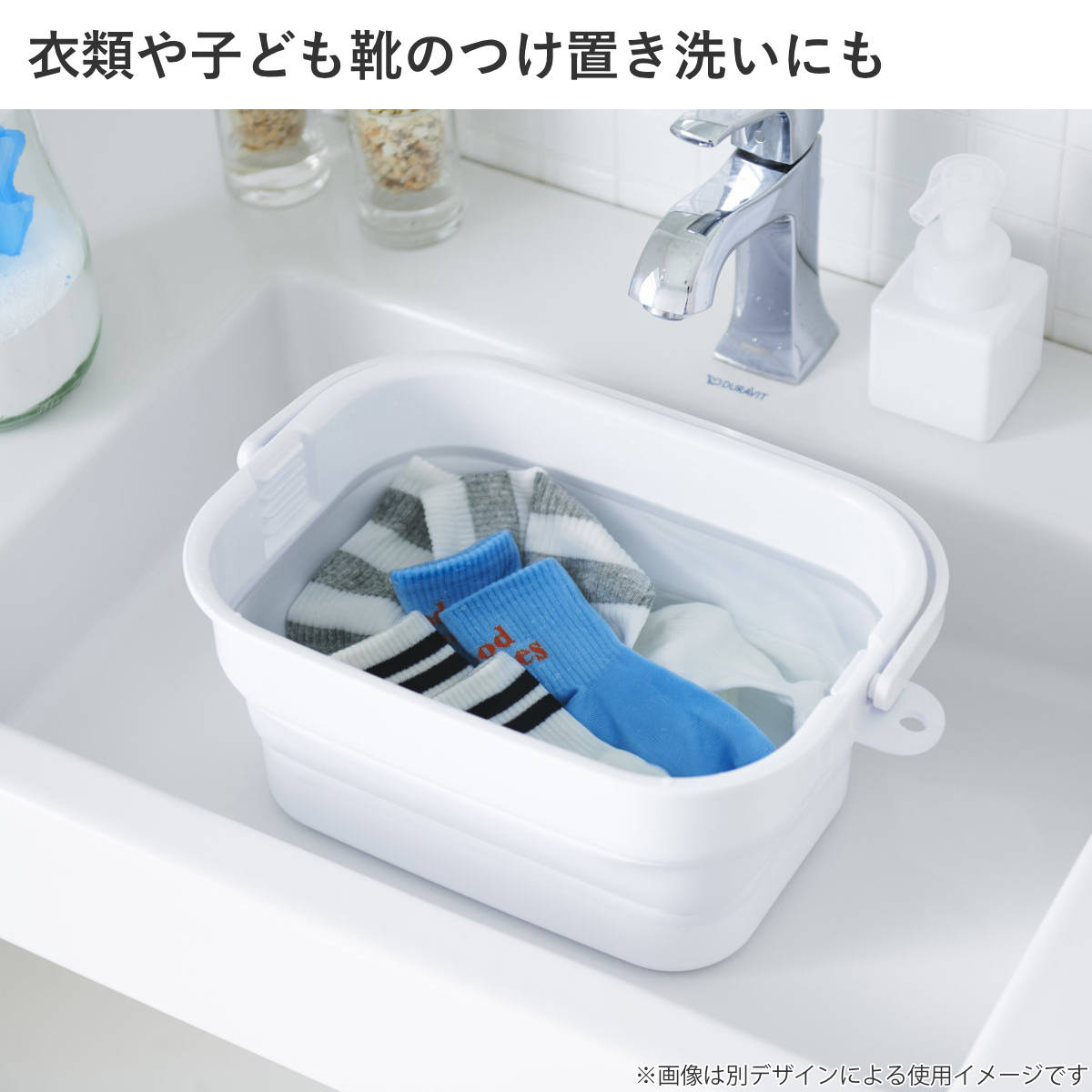 洗い桶以外にも、靴下や下着などの衣類や子ども靴のつけ置き洗いにもお使いいただけます。また、アウトドアでドリンクを冷やしたり、キャンプの食器洗い用に使うのもおすすめです。