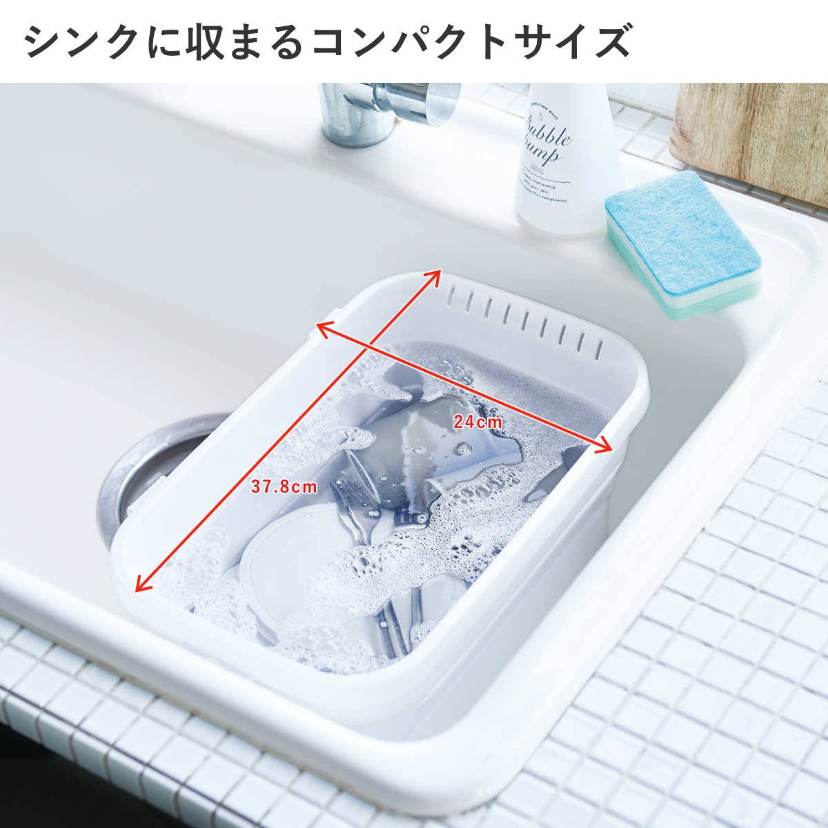 シンク内で縦向きでも使用できる、扱いやすいコンパクトサイズです。