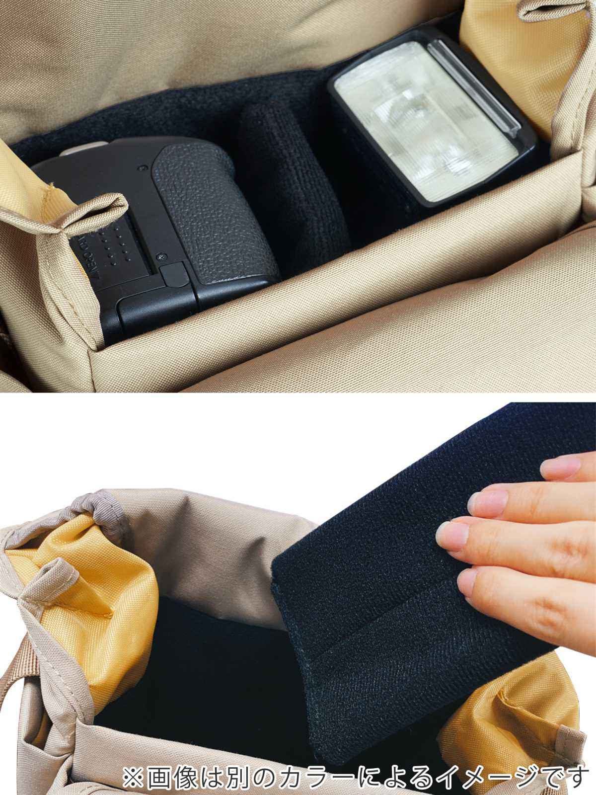 フラップカバー側にはファスナー収納が付いており、予備のレンズの収納にもぴったりです。