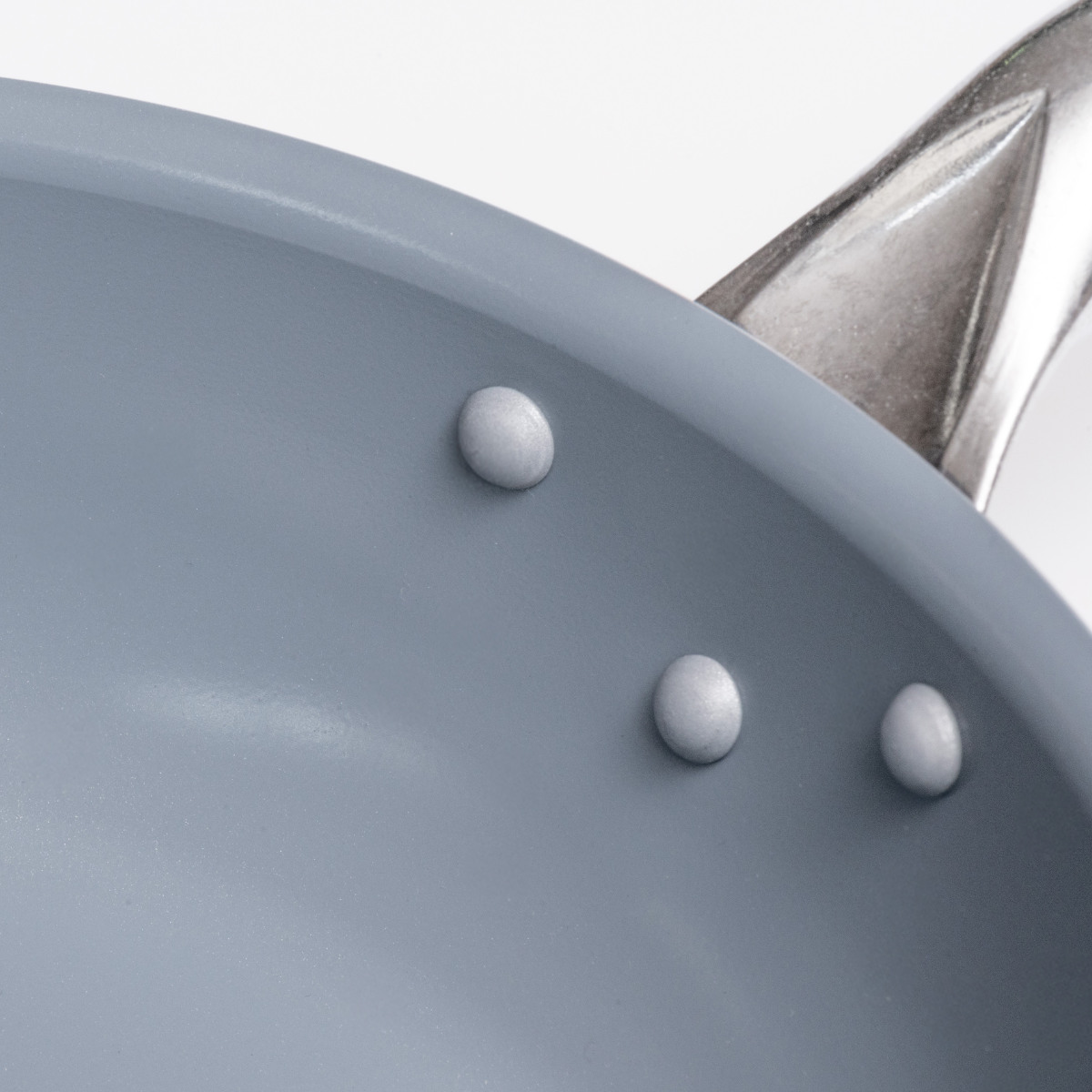 フッ素加工と同様、焦げ付きにくいセラミックコーティング。汚れが落ちやすいので、お手入れが簡単です。