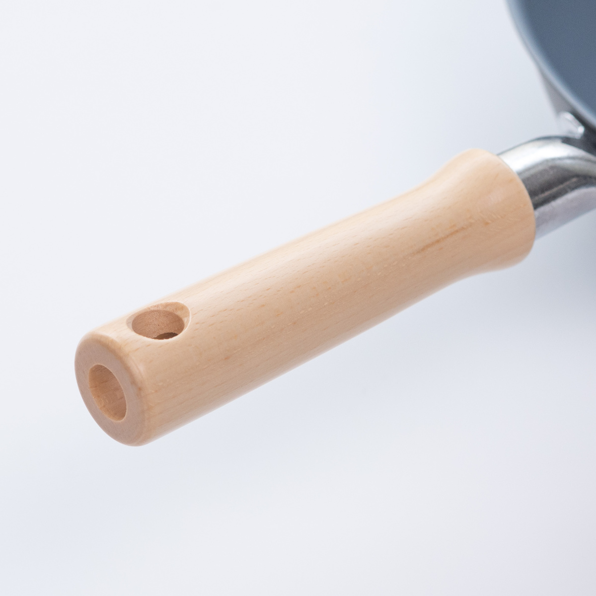 ハンドルは、持ちやすく収納しやすいショートハンドルを採用しています。木目が見える木製でナチュラルなデザインです。