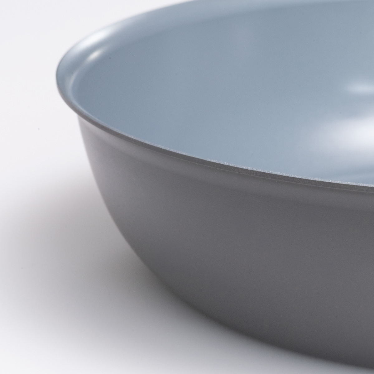内面はフッ素樹脂使用せず、光沢感のあるセラミック加工が施されています。有害物質が発生しにくく、小さなお子様がいるご家庭でも安心です。製造から梱包に至るまで自社で行った、こだわりの日本製です。