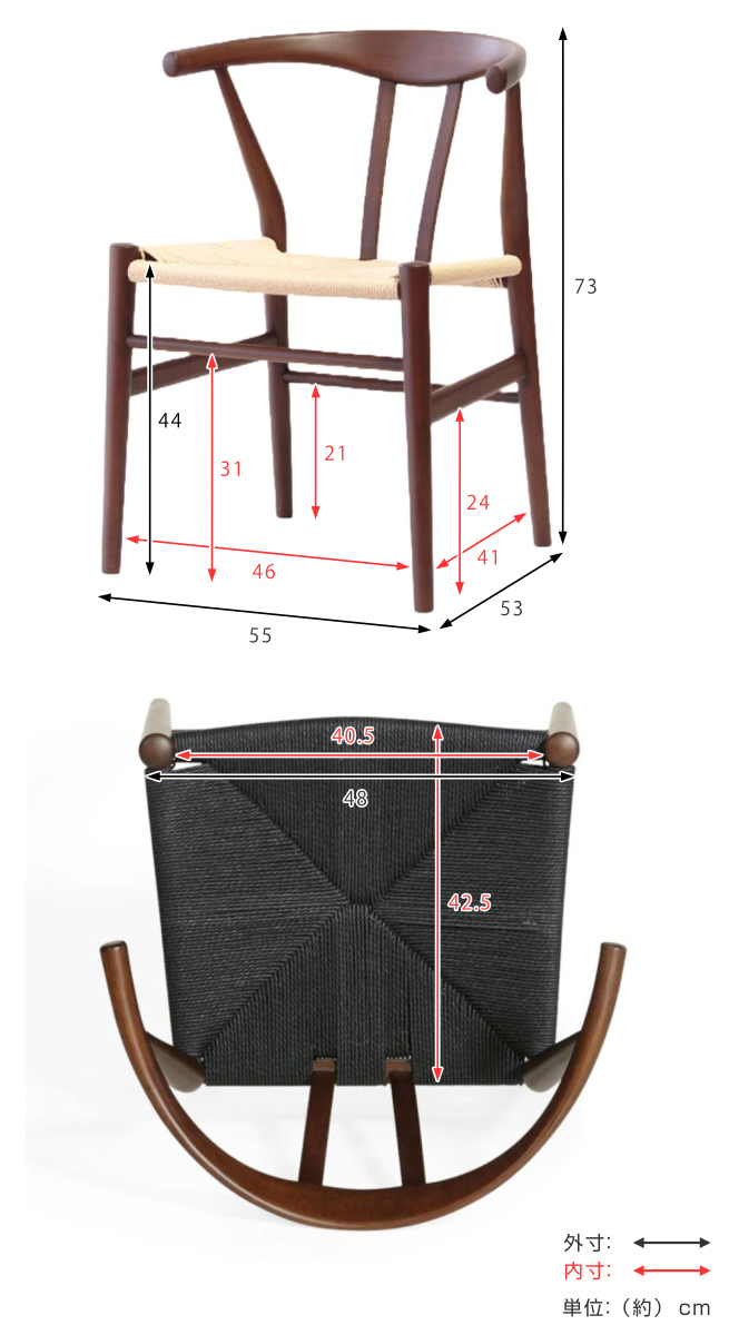 | サイズ | 約 幅55×奥行53×高さ73(cm) 座面高:約 44(cm) |