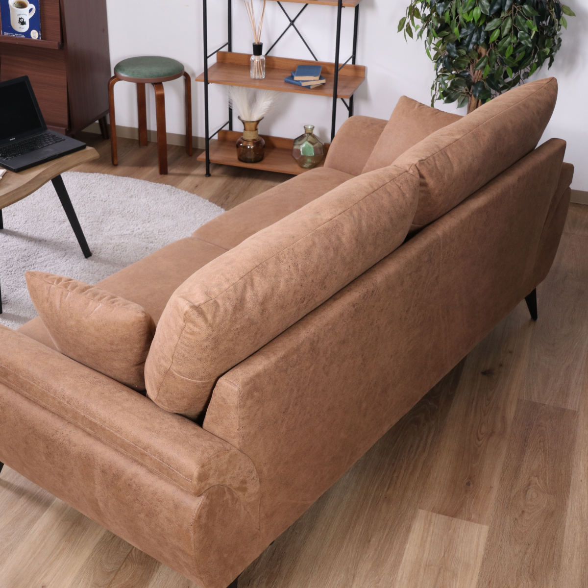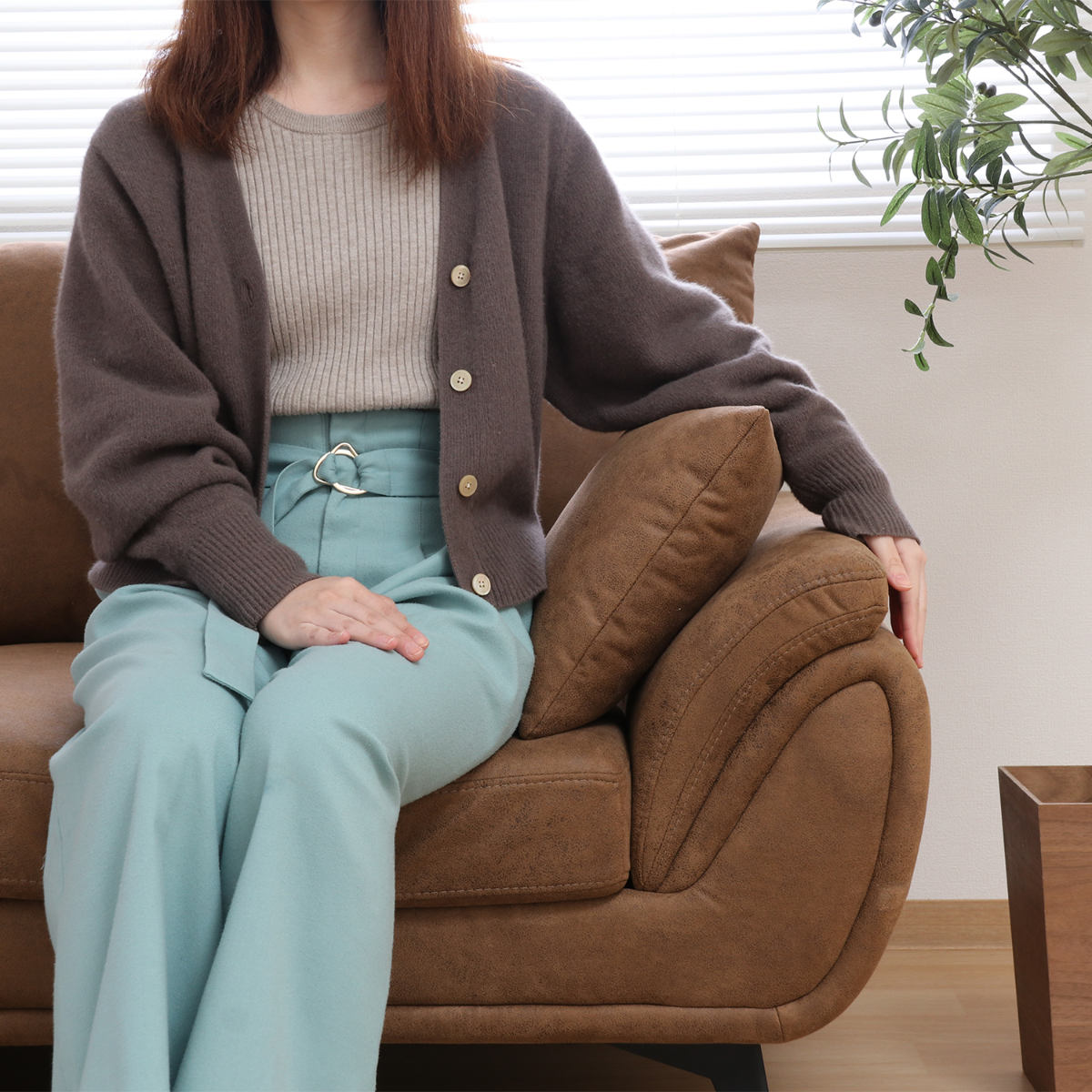 ポケットコイルが入った座面はしっかりとした座り心地で、シリコンフィル入りの背もたれは柔らかく腰当たりの良いソファです。