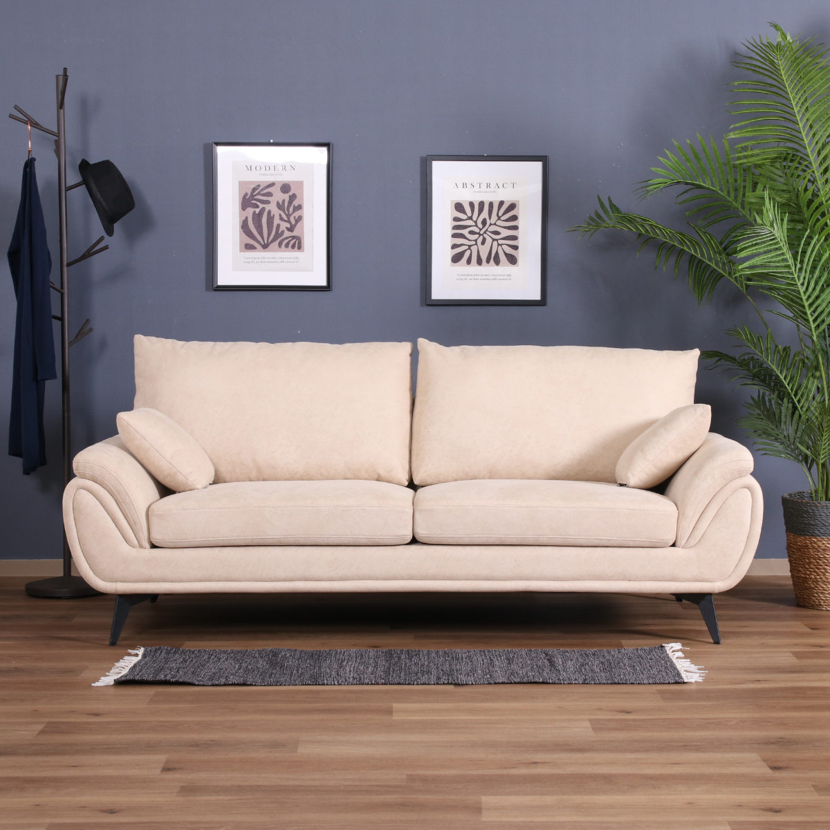 ボリュームのあるシンプルなソファです。座面も広く作られているため、ソファの上であぐらをかいたり、深く腰掛けたりと自由にくつろいでいただけます。ブラックスチールの細い脚がお部屋に引き締まった印象に見せてくれます。