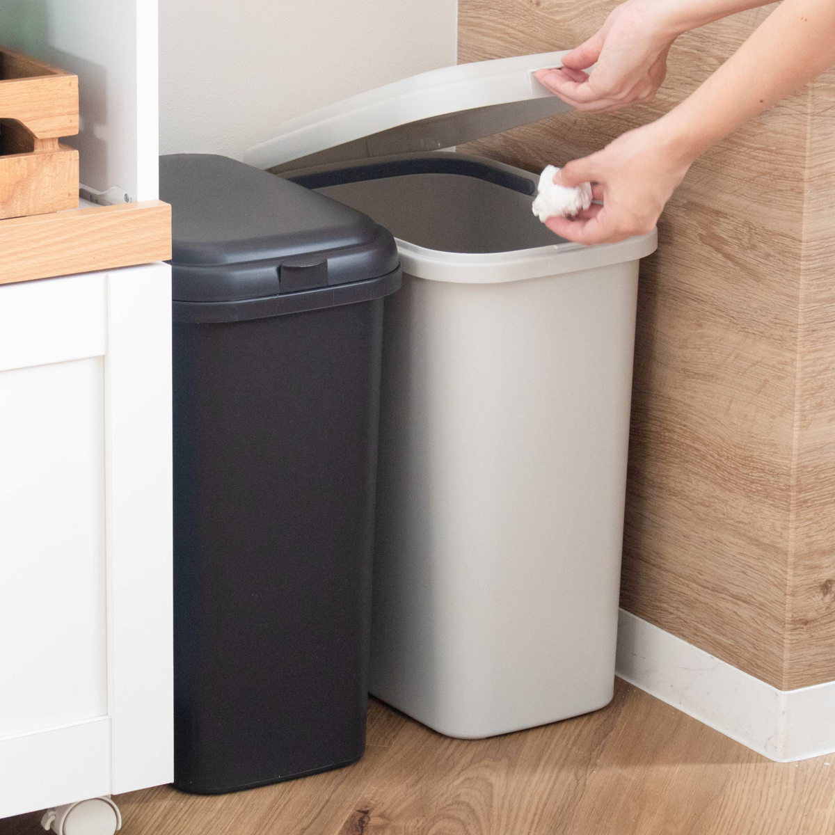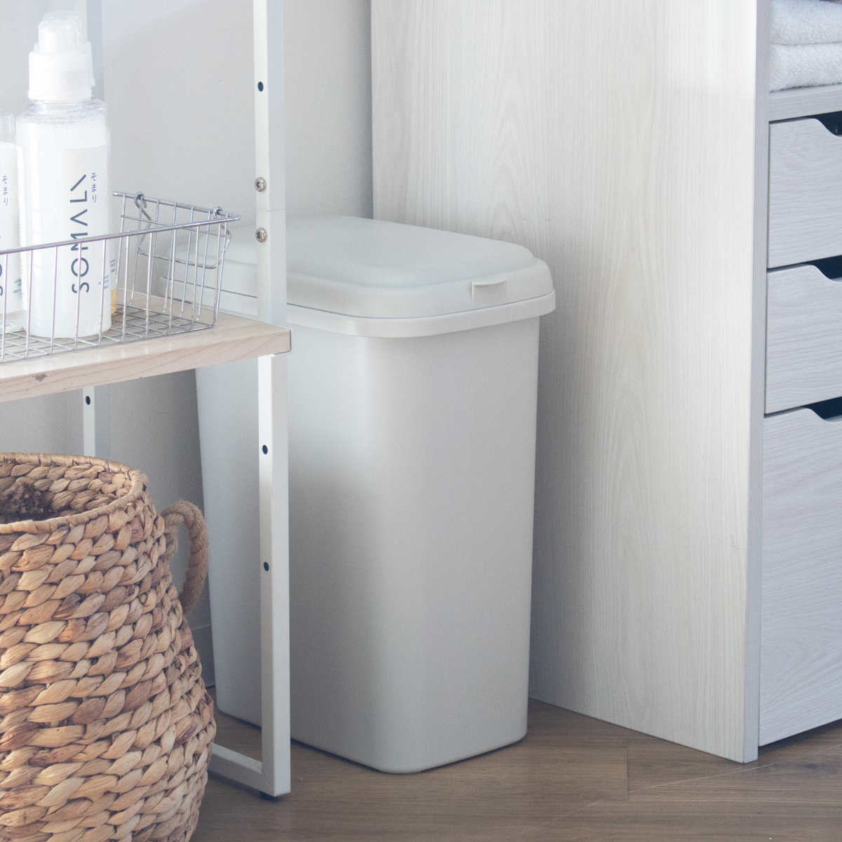 ご自宅用はもちろん、オフィス空間にも調和する、シンプルな佇まいが魅力のゴミ箱です。ハンドオープン式のふた付きで中身を隠せるため、インテリアを損ないません。