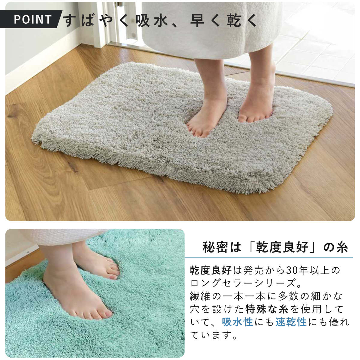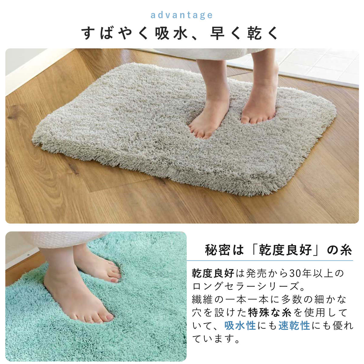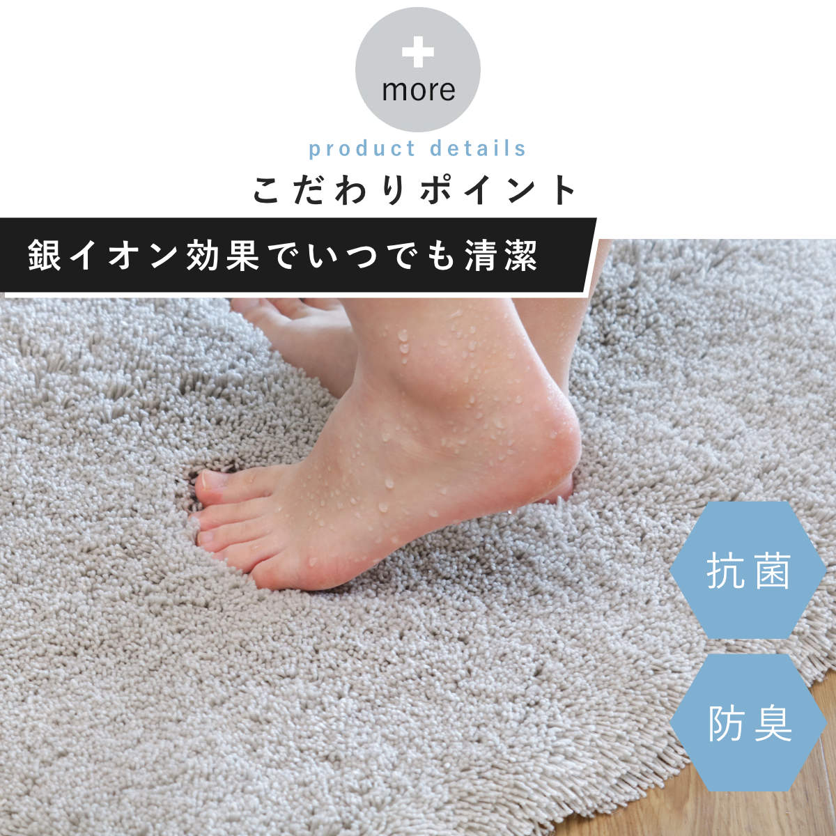 洗っても効果が続く抗菌防臭加工付きで、マット上の菌の増殖を抑制するので、いつまでも衛生的にお使いいただけます。